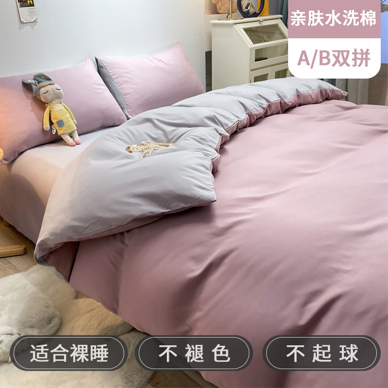 Двойная комбинация — элегантный фиолетовый + светло-розовый [приятный для кожи стираный хлопок — не скатывается и не выцветает]
