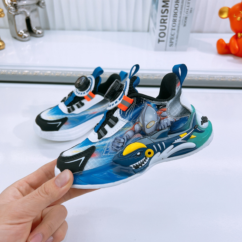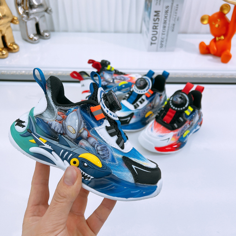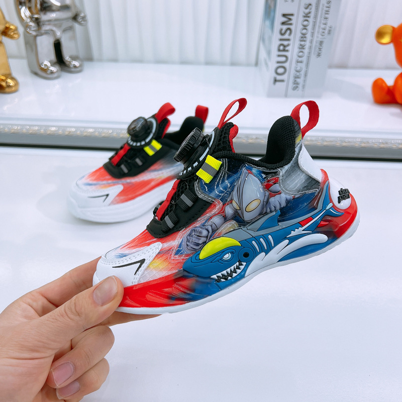 Главная страница > Кроссовки Ultraman для мальчиков с вращающимися пуговицами Весенняя детская обувь с легкой светящейся обувью с дышащей сетчатой поверхностью, легкая мягкая подошва