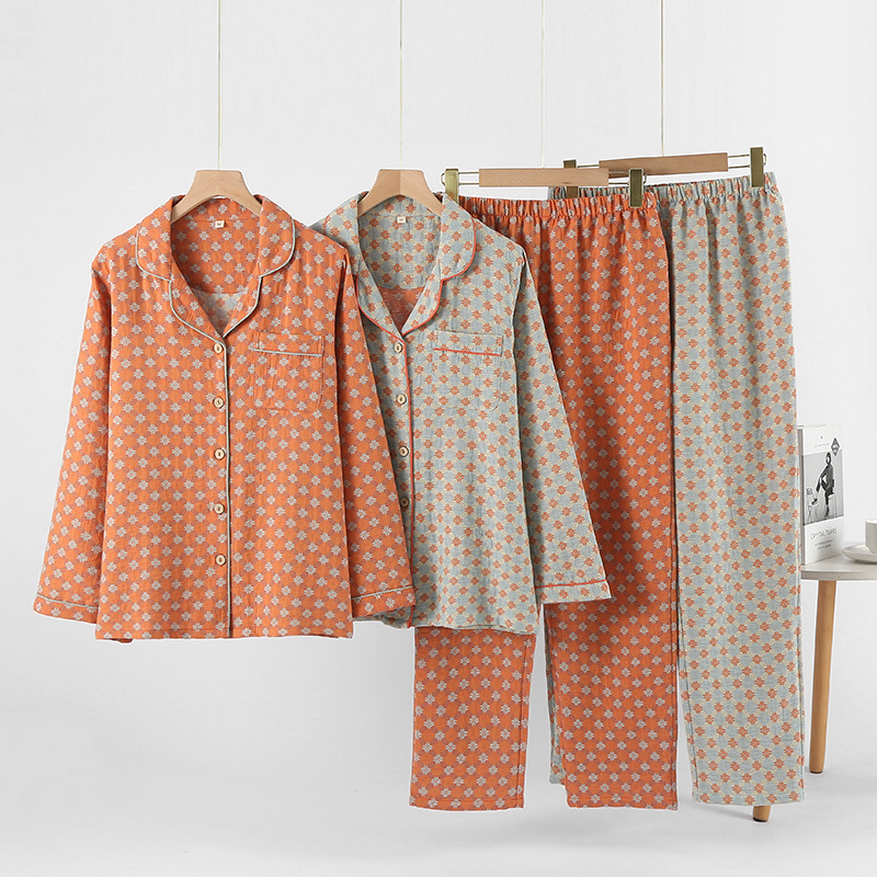 Хлопчатобумажная пижама женская весна и осень двухслойный цвет трикотажная хлопчатобумажная пряжа