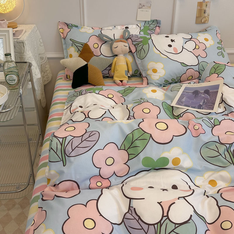 Модный четырехкомпонентный комплект постельного белья для студентов, включая пододеяльник, простыню и трехкомпонентный комплект для общежития.