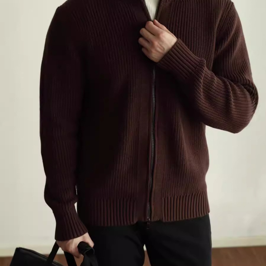Главная страница > Мужская куртка-поло с двойной молнией, трикотажная, плотная, антипилинговая, утолщенная, однотонная, осенне-зимняя, трансграничная коллекция 2024 года