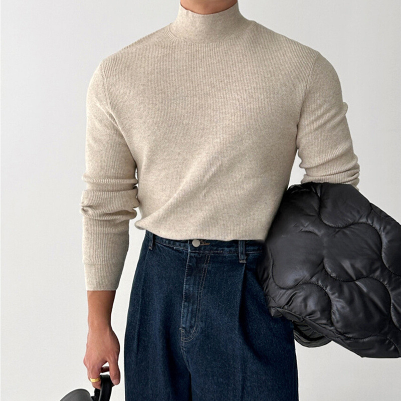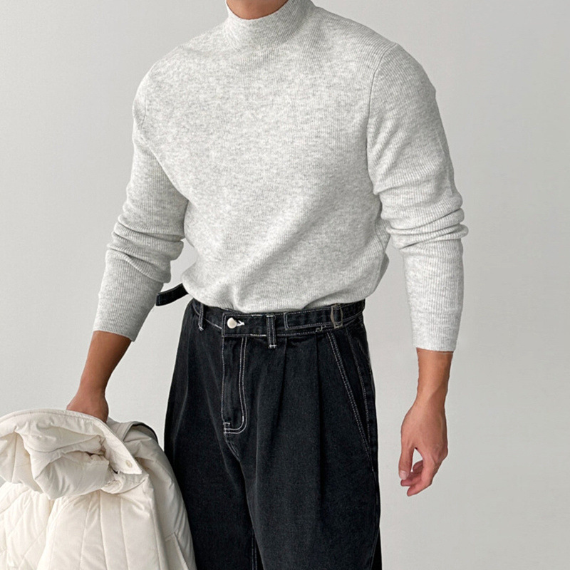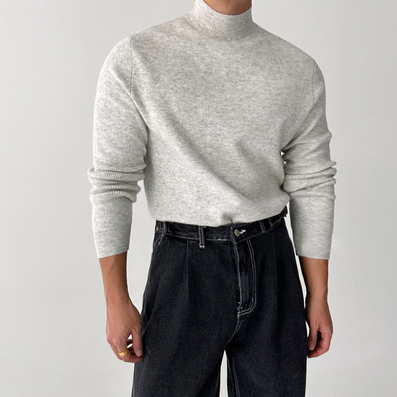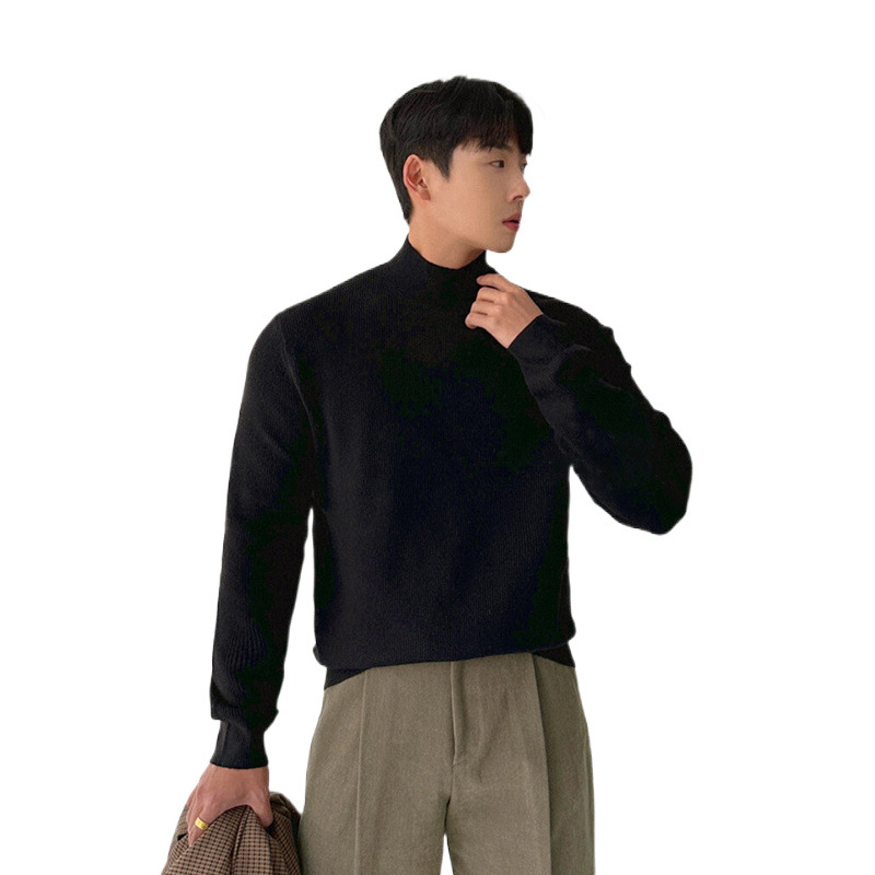 Главная страница > Гонконгский стиль ретро chic свитер для мужчин высокого уровня с полувысоким воротником повседневный трикотаж тренд корейского сплошного цвета