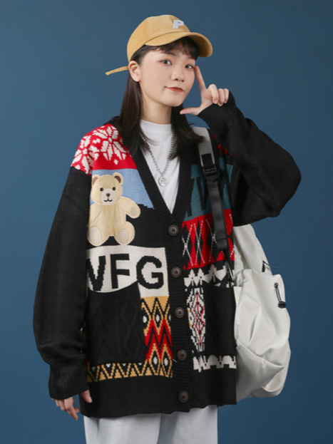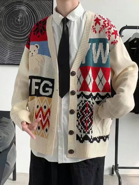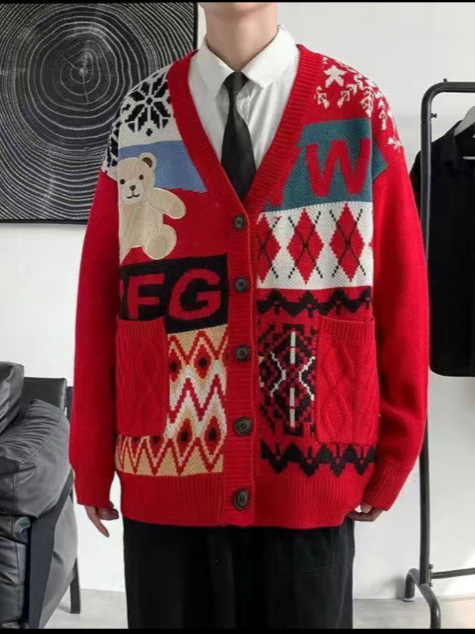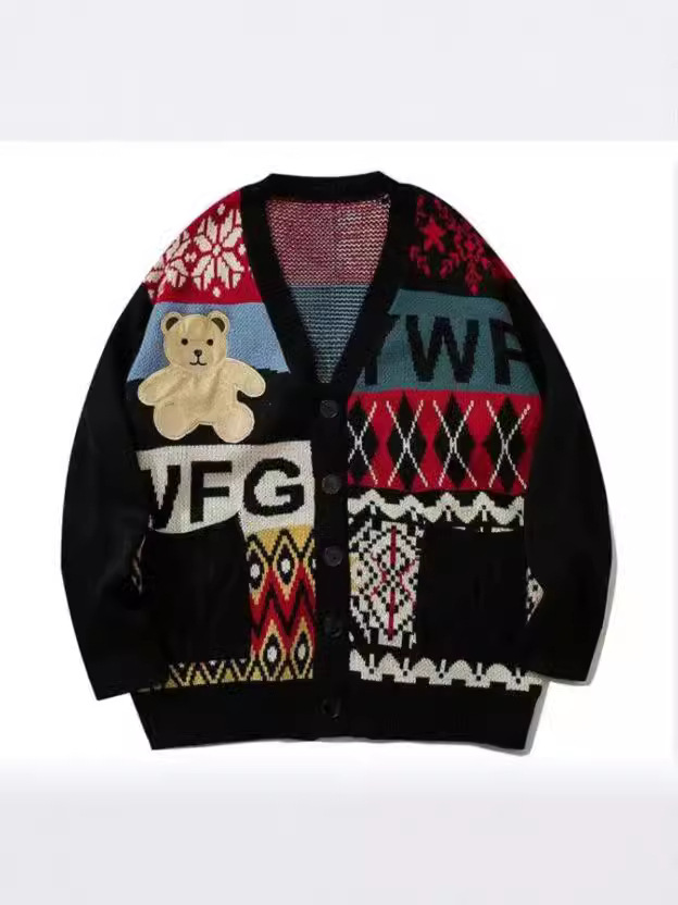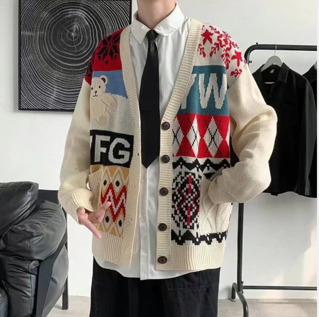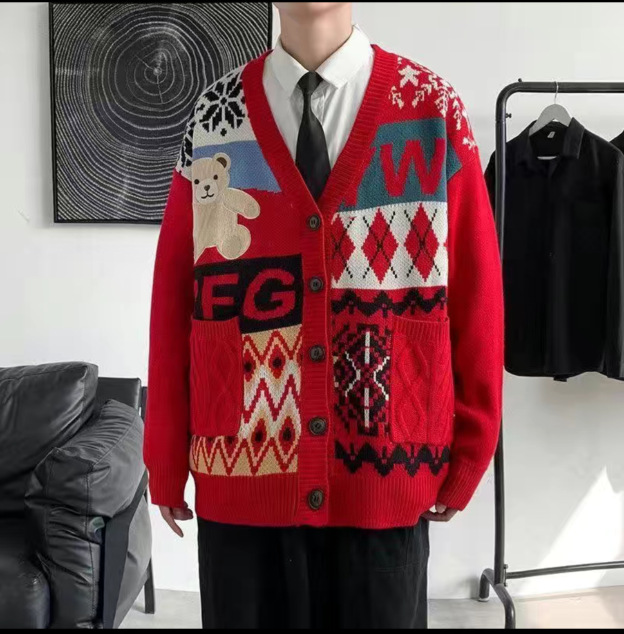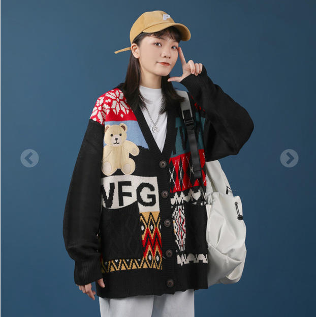 Главная страница > Американский винтажный свитер с высоким воротником свитер мужской 2024 осень и зима ленивый ветер свободный медведь пара вязаный свитер