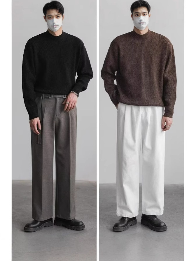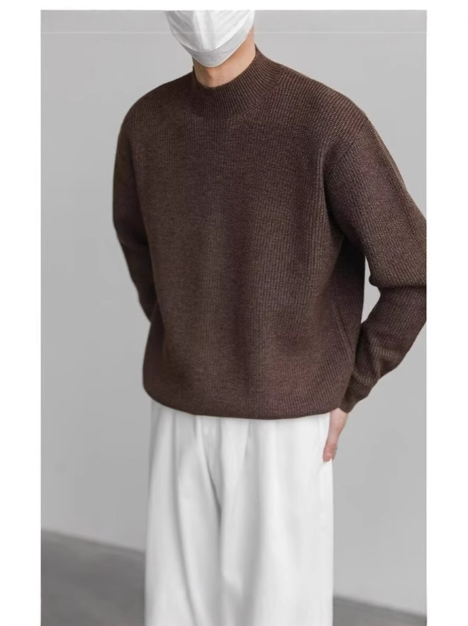 Главная страница > Свитер мужской весенне-осенний стиль 2025 трикотажный свитер марки Tide с половинным вырезом