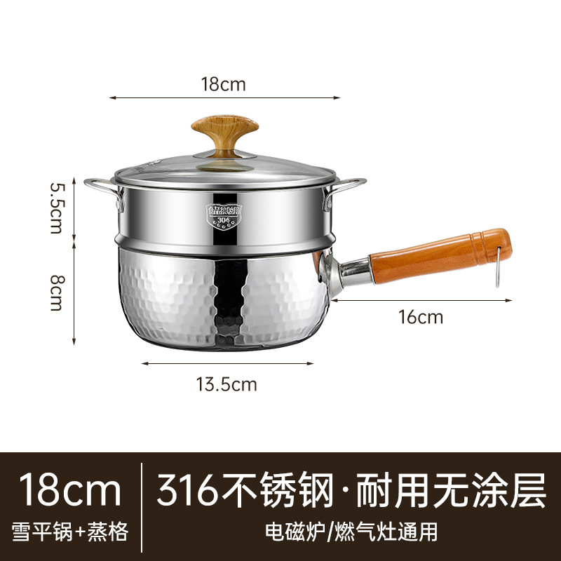Утолщенная кастрюля для молока из нержавеющей стали 316, кастрюля Yukihira в японском стиле, кастрюля для детского питания без покрытия, кастрюля для супа с антипригарным покрытием, кастрюля для приготовления лапши быстрого приготовления