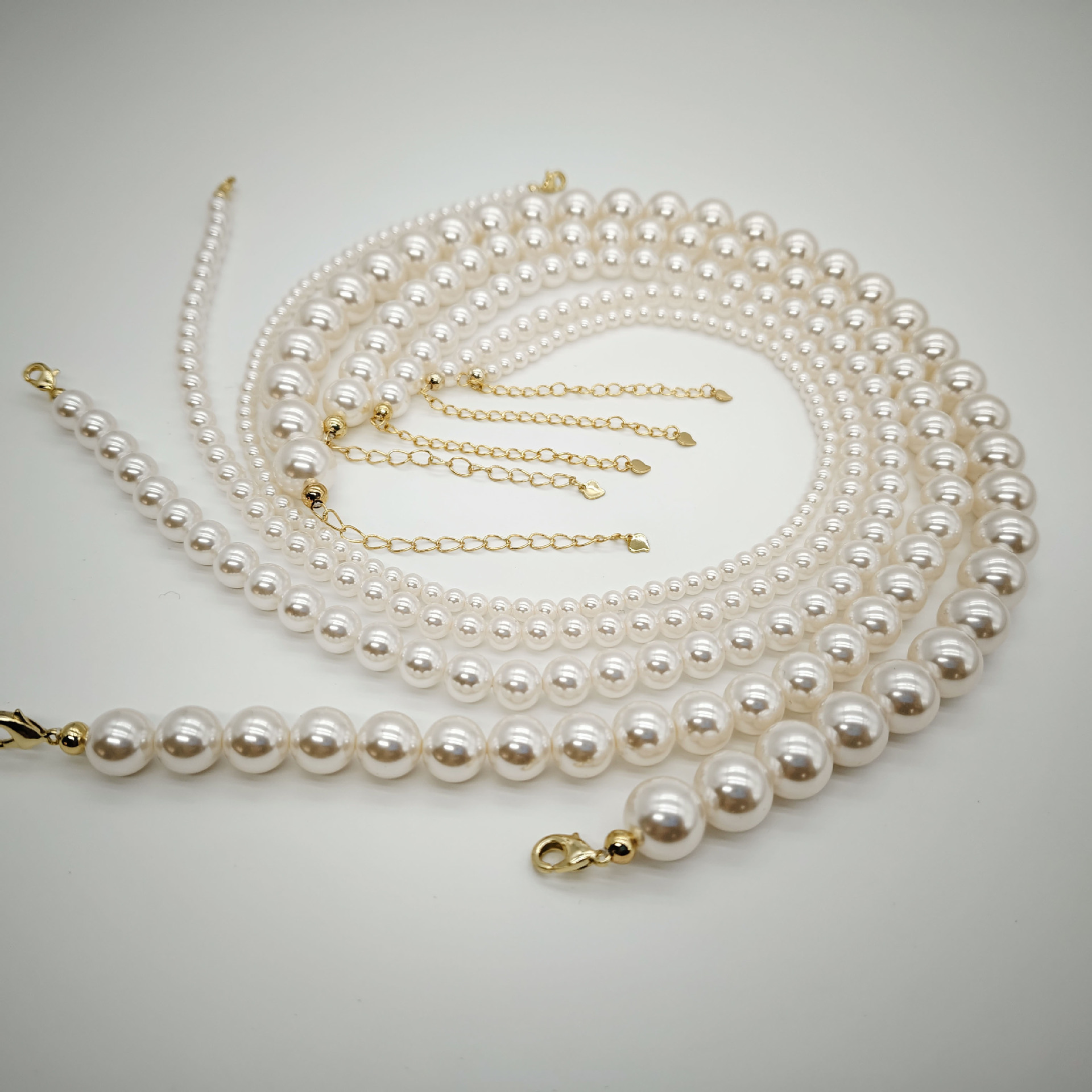 Жемчужно-белая 10 мм Жемчужно-белая удлинительная цепочка 40 + 6 см