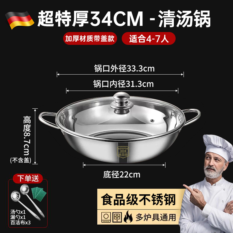 Очень толстая нержавеющая сталь 304 — суповая кастрюля диаметром 34 см + бесплатная крышка + бесплатная суповая ложка и дуршлаг + бесплатная мочалка♜♜