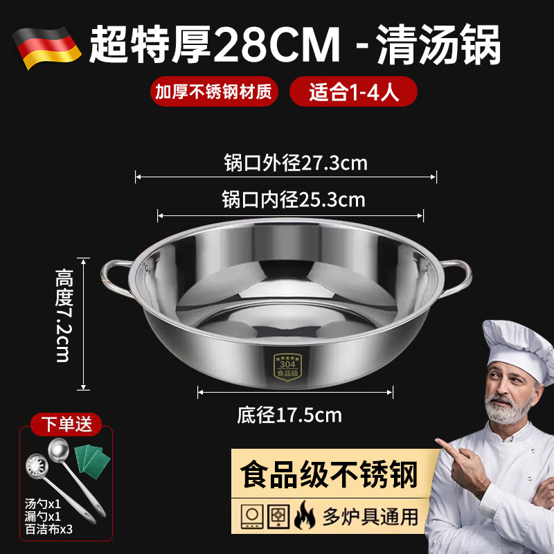 Очень толстая нержавеющая сталь 304 — суповая кастрюля диаметром 28 см + бесплатная суповая ложка и дуршлаг + бесплатная мочалка♜♜