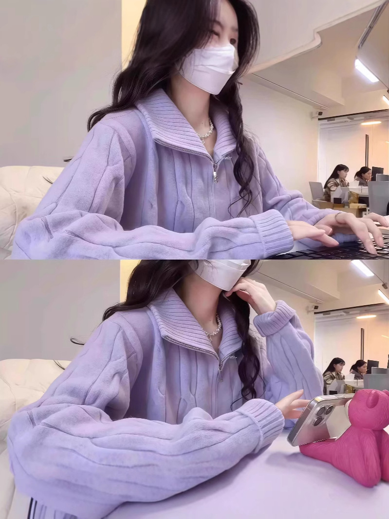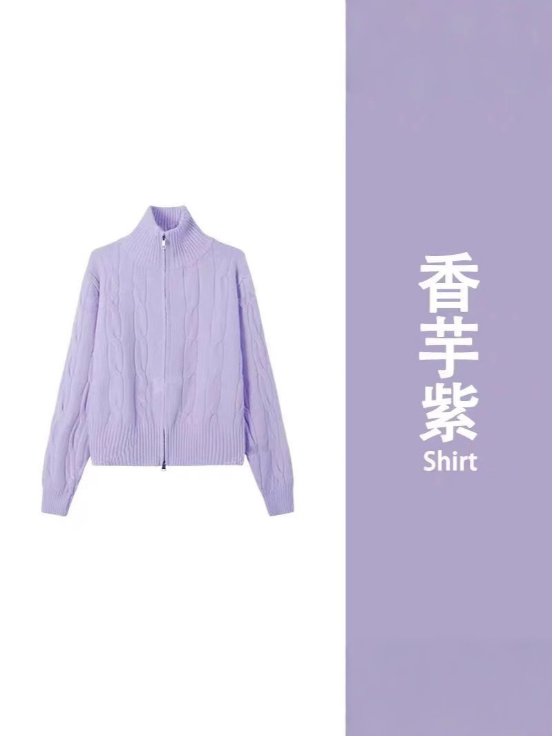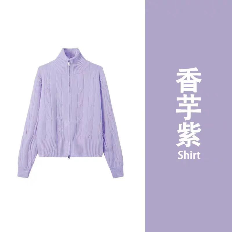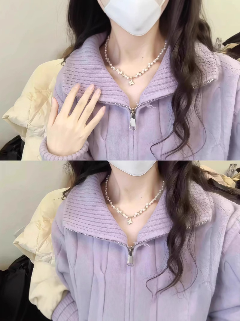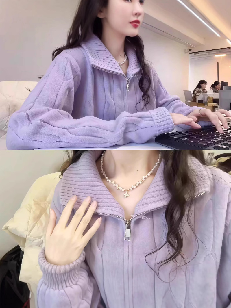 Главная страница > Женский свитер-жакет с воротником-стойкой и молнией цвета таро, новинка зимы 2025, утепленный, в стиле «допамин», толстый топ