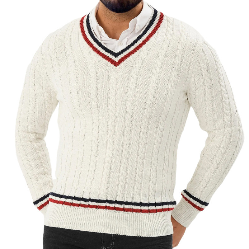Главная страница > Трансграничный трикотаж с цветными блоками, тонкий пуловер с v-образным вырезом и длинными рукавами, трикотаж, осенне-зимняя новая европейская и американская уличная мужская одежда