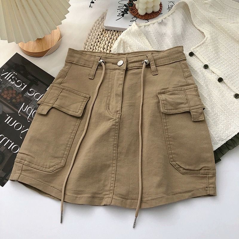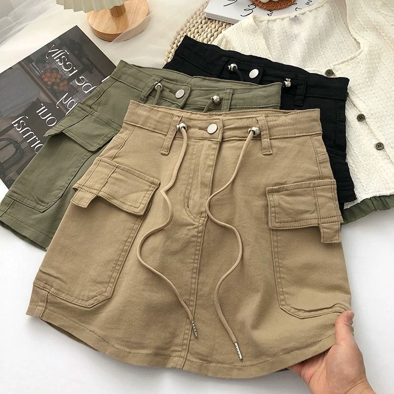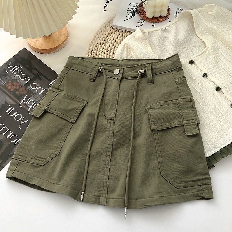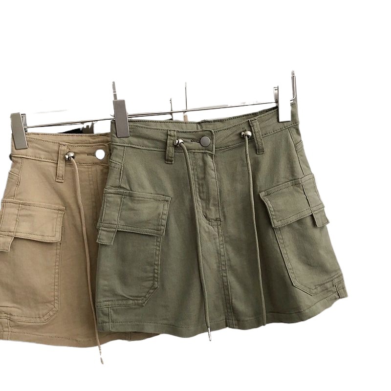 Главная страница > Американская ретро-военная зеленая рабочая одежда, короткая юбка для женщин, летняя сексуальная уличная стильная тонкая джинсовая юбка трапециевидной формы на шнуровке
