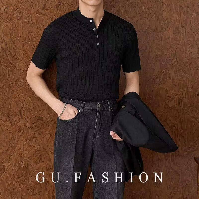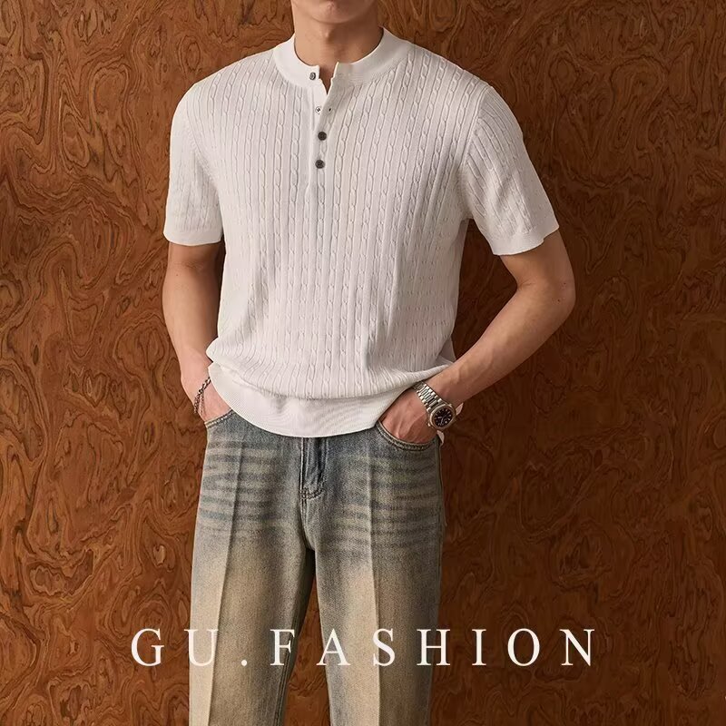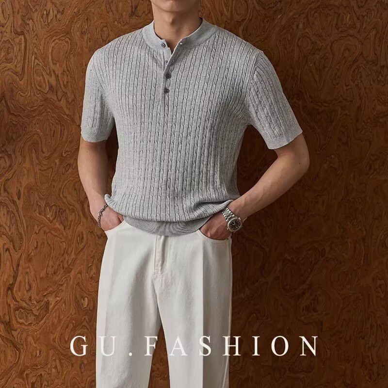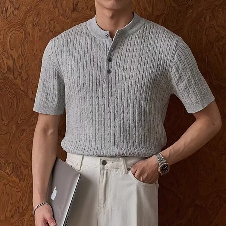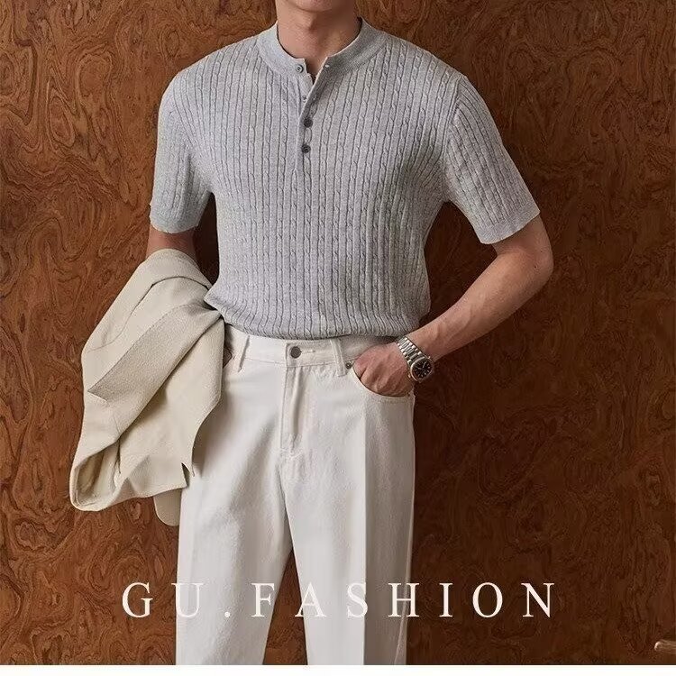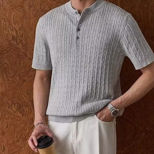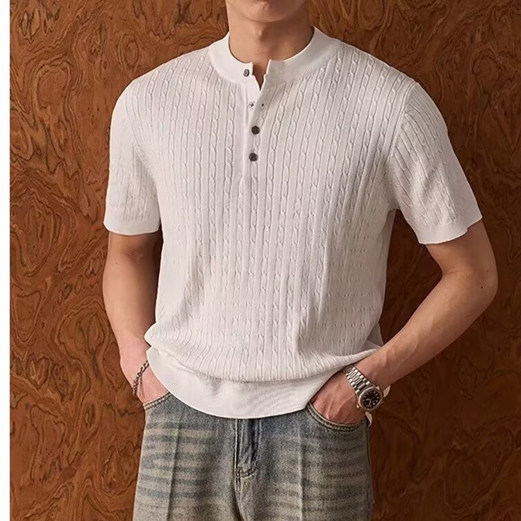 Главная страница > Летний новый трикотаж однотонный пуловер на пуговицах с короткими рукавами, мужская высококачественная рубашка поло с воротником Henley