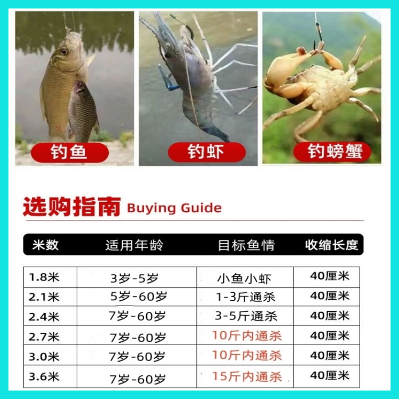 - Двойной комплект 2,7, получите 1.8m + полный набор аксессуаров, готовых к рыбалке.