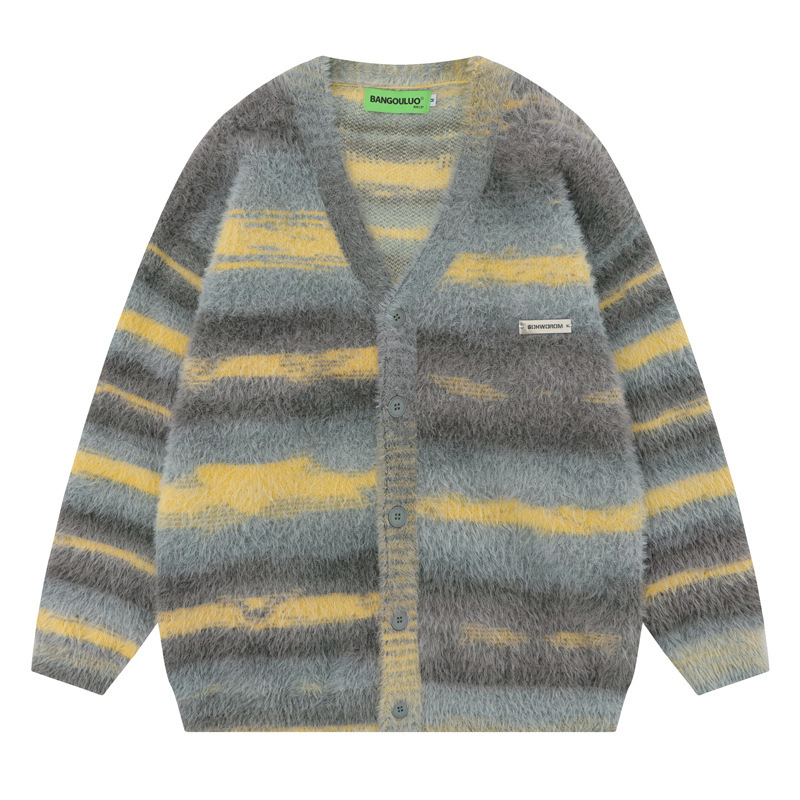 Главная страница > Ins модный брендовый ретро свитер с градиентными полосками, мужской свободный свитер в ленивом стиле, уличный кардиган для пар, вязаная куртка