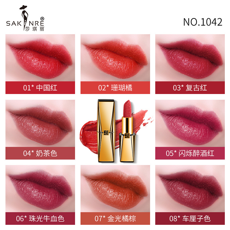 Saqili маленький золотой бриллиант мягкий бархат увлажняет помаду не легко выцветать 1042