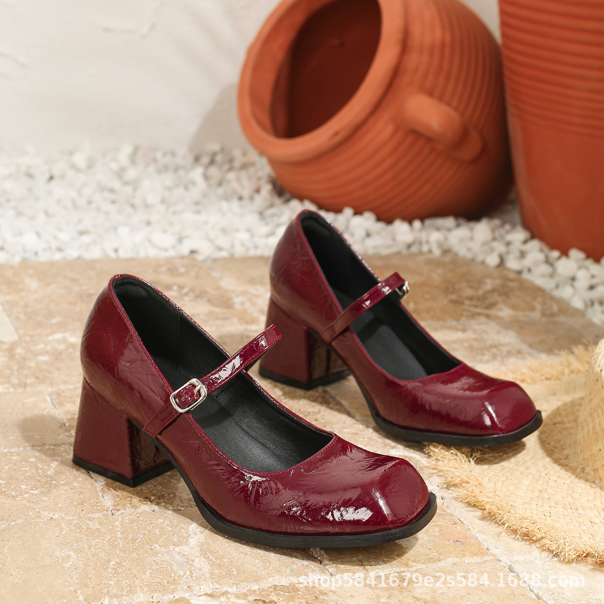 Главная страница > Туфли на массивном каблуке с одной лямкой, бордовые, большие размеры (35-46), высота каблука 6 см, для трансграничной торговли, европейский размер, большие размеры.