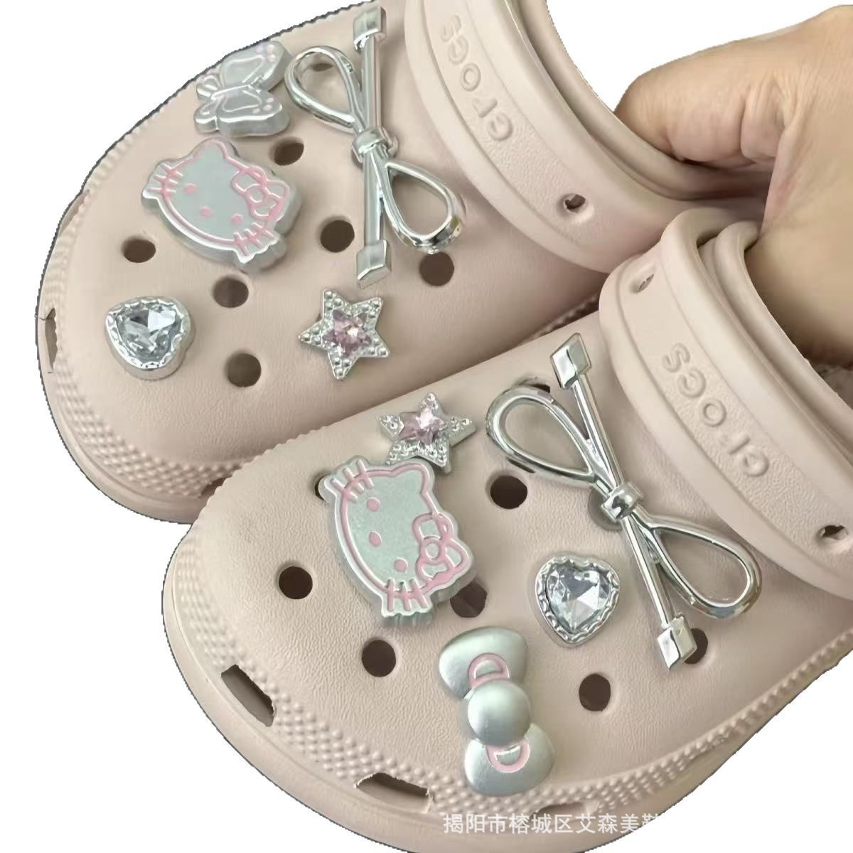 Главная страница > Серебряный милый кошачий бант с пятиконечной звездой, пряжка для обуви, цветок в форме сердца, креативная обувь, цветок, аксессуары «сделай сам», аксессуары