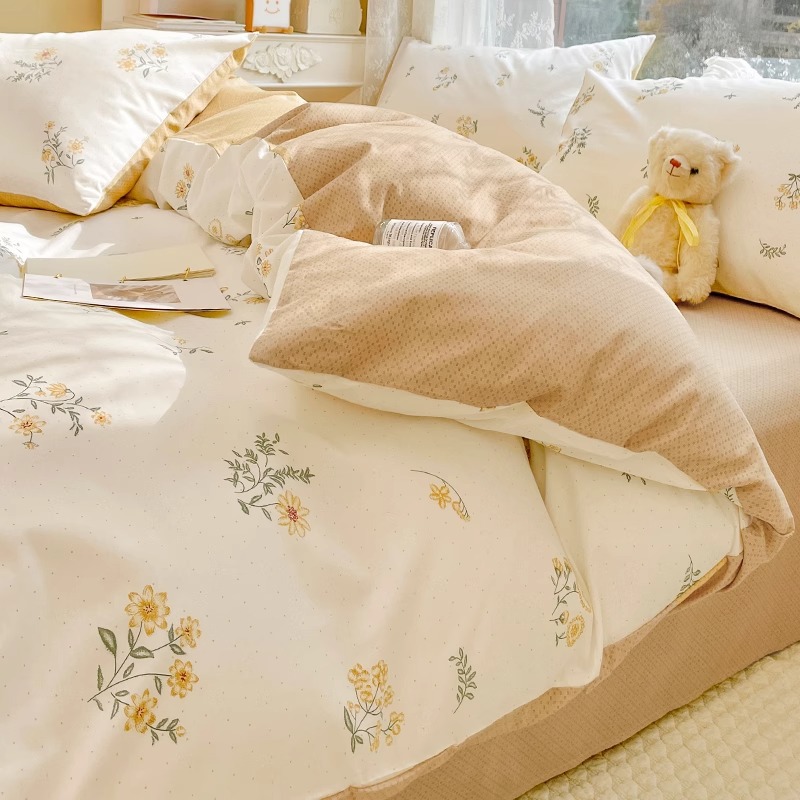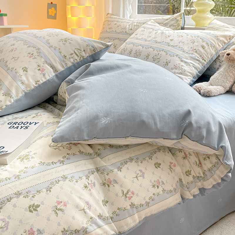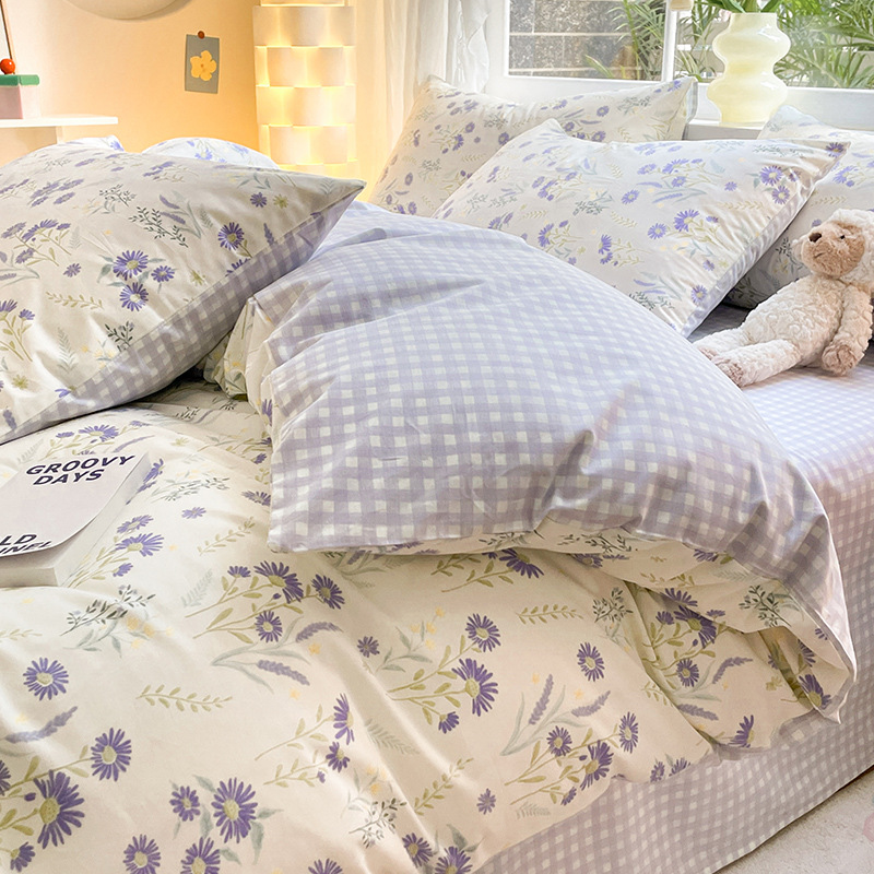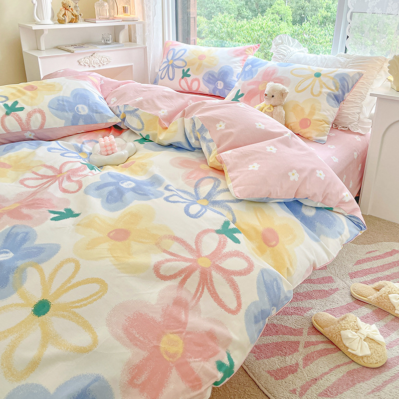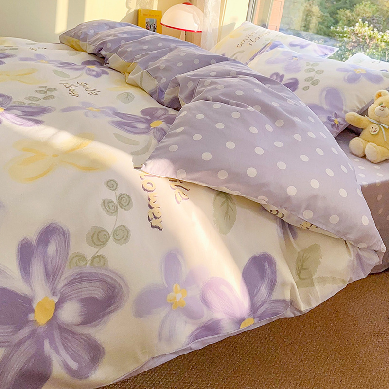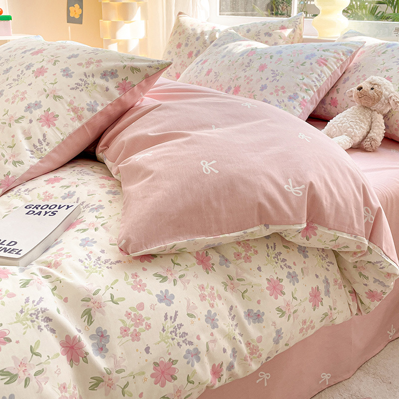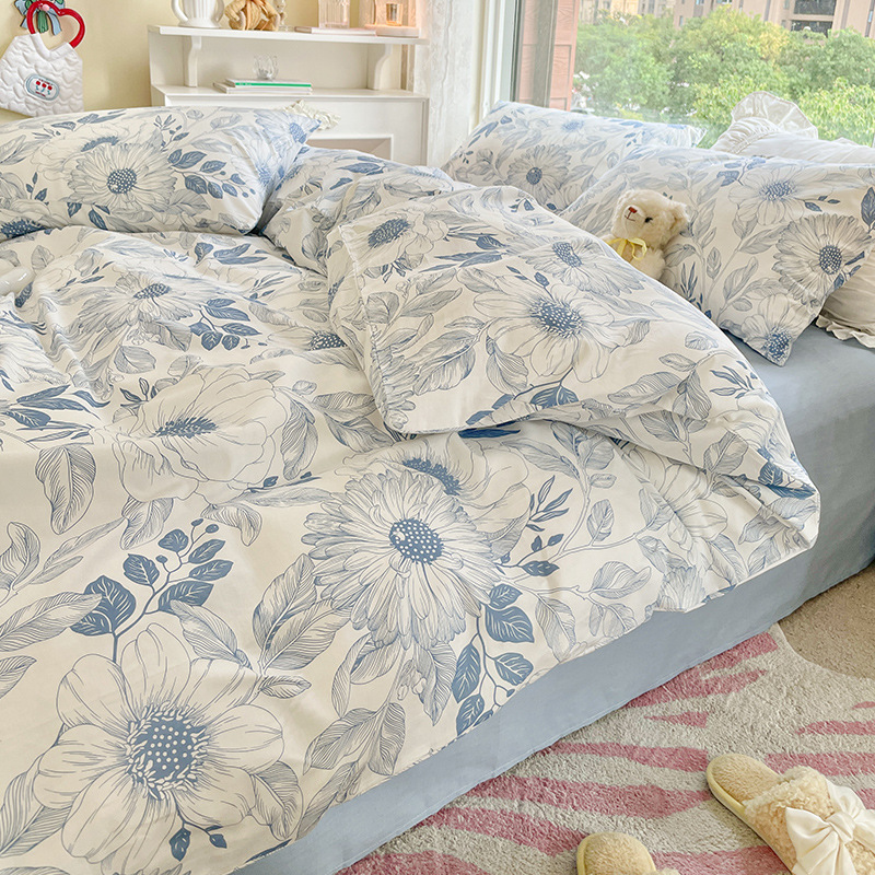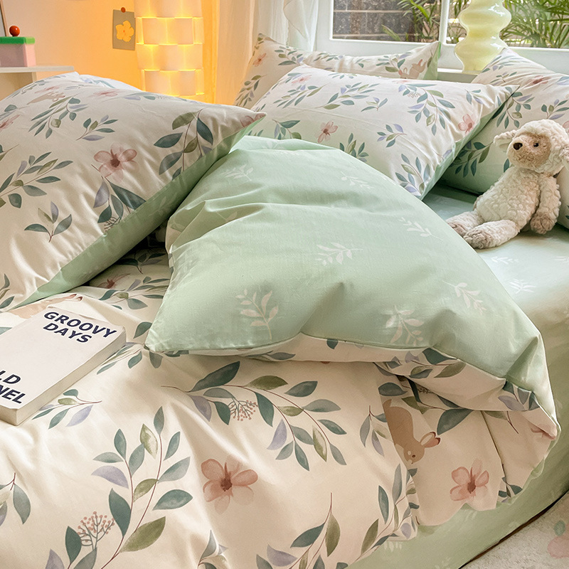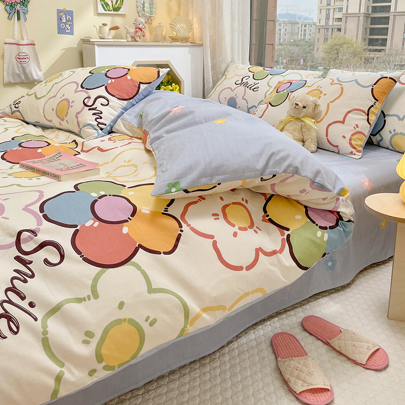 Хлопок из четырех частей 2024 Новое постельное белье простыня пододеяльник 3 студента 4 общежития односпальная кровать Комплект из трех предметов