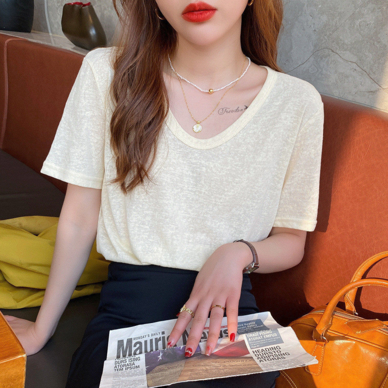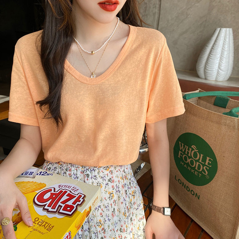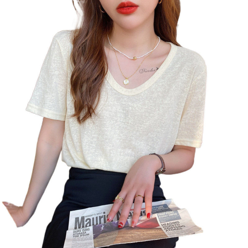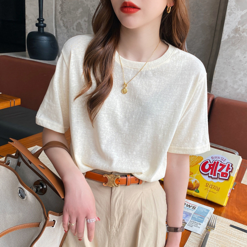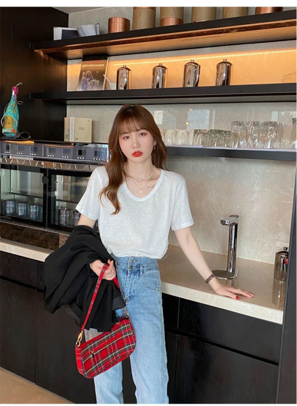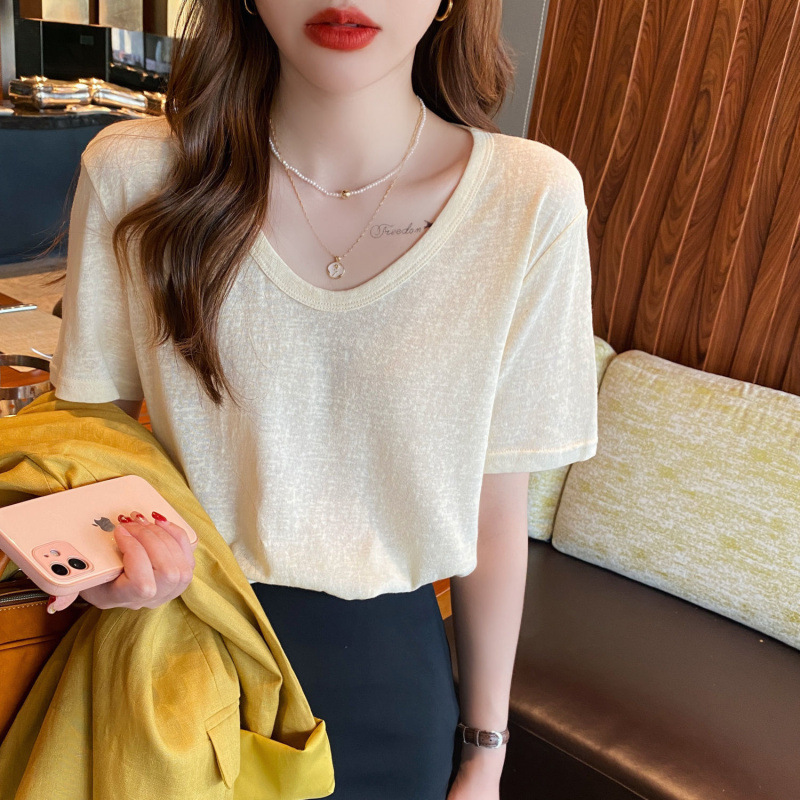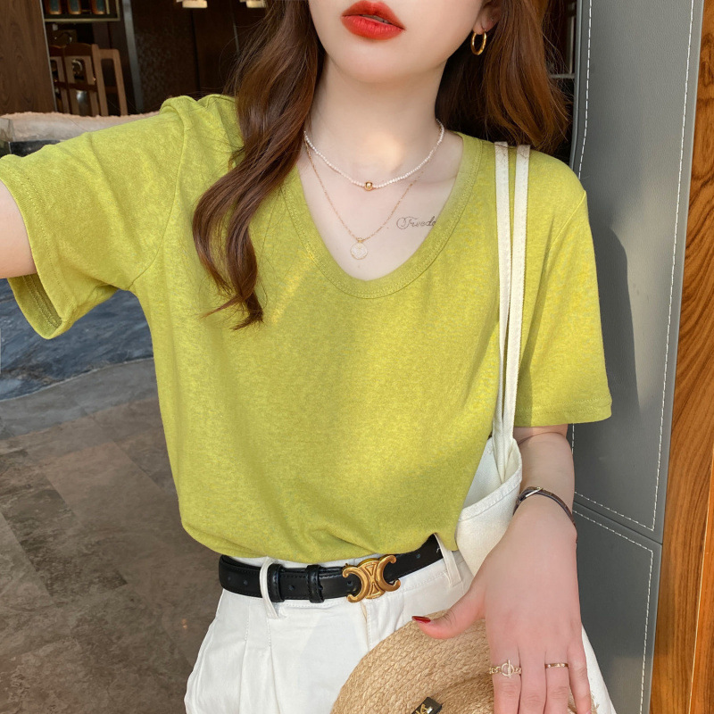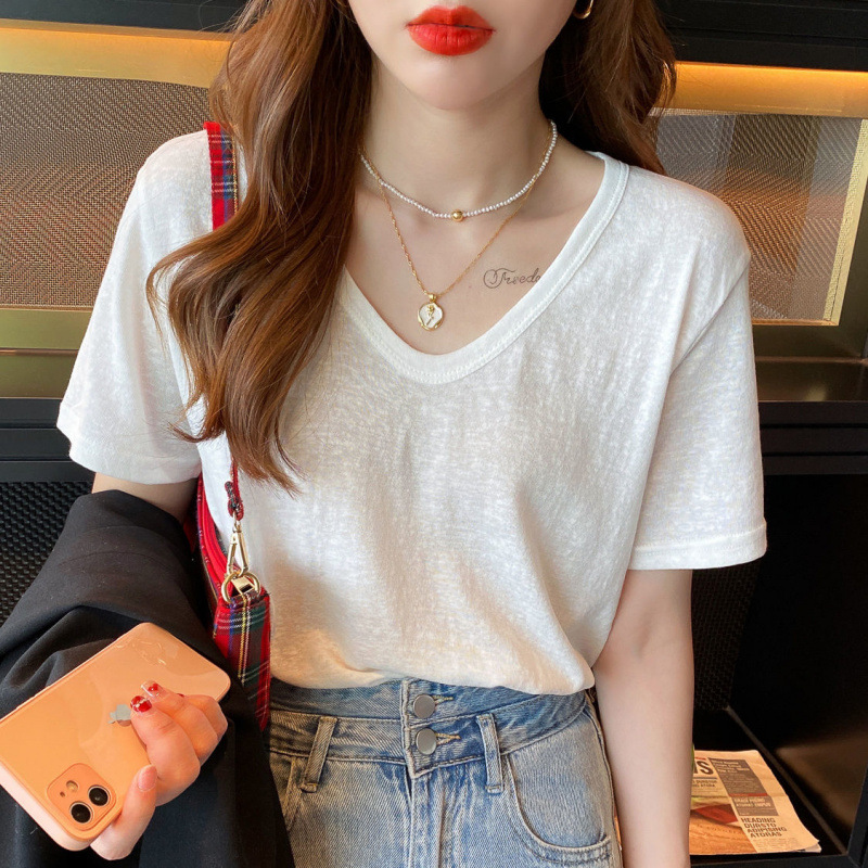 Главная страница > 2024 новая футболка с v-образным вырезом, женская летняя футболка с короткими рукавами из хлопка и льна, свободный дизайн, нишевый белый топ из ледяного шелка, правое плечо