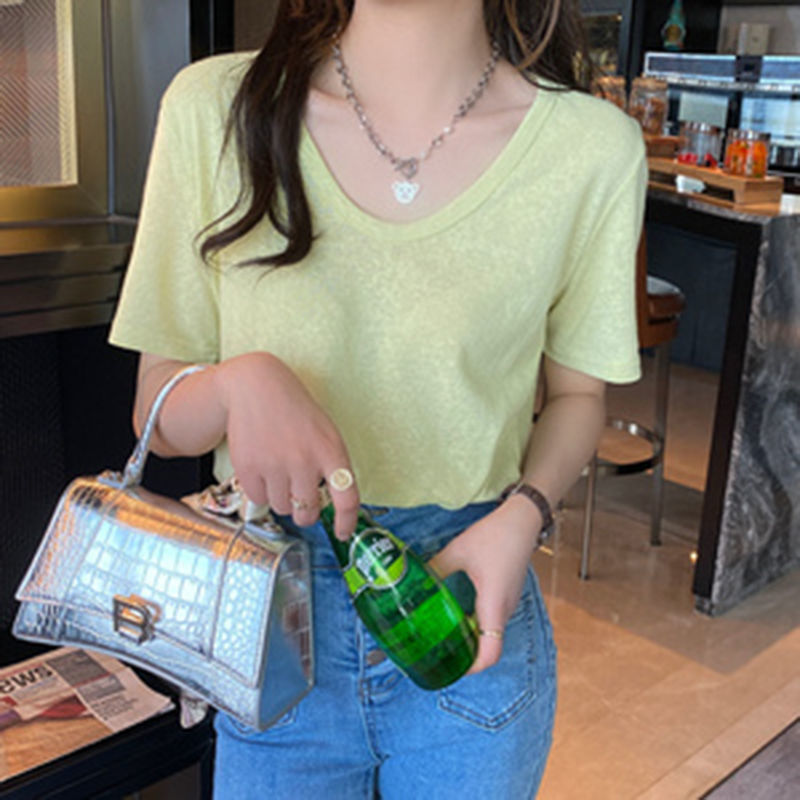 2024 новая футболка с v-образным вырезом, женская летняя футболка с короткими рукавами из хлопка и льна, свободный дизайн, нишевый белый топ из ледяного шелка, правое плечо