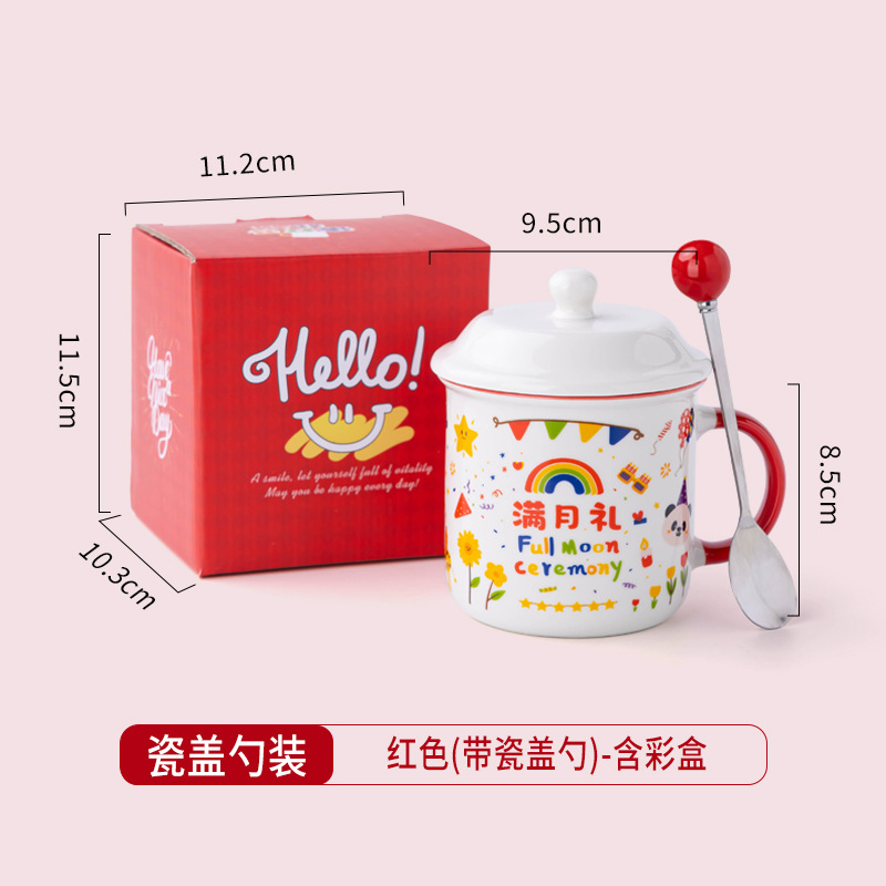 Подарок в полнолуние (чашка из искусственной эмали с красной фарфоровой крышкой и ложкой) - включая цветную коробку