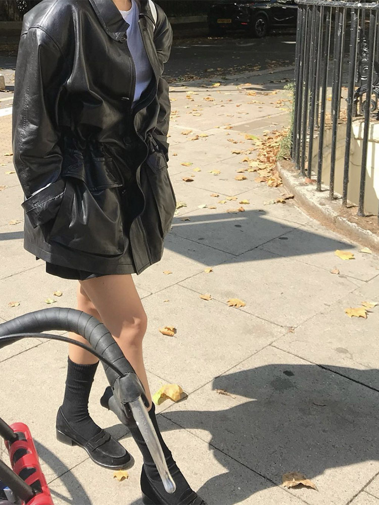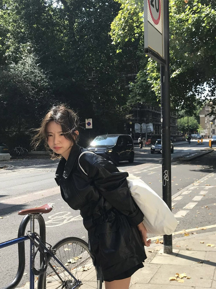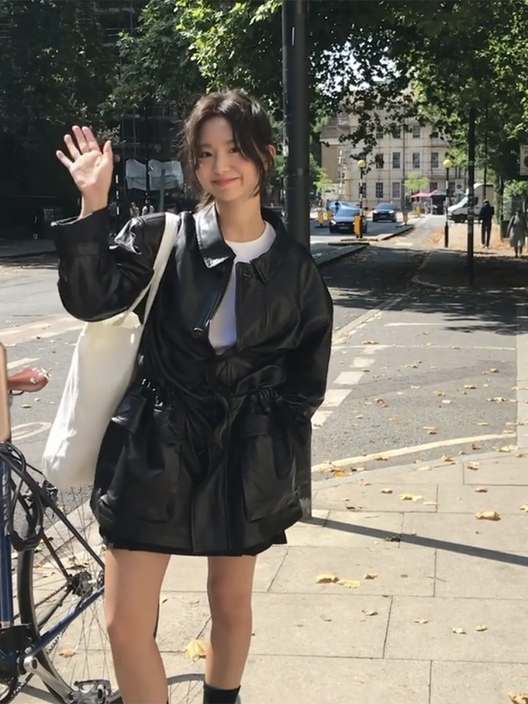Главная страница > Кожаная куртка для девочек, черная кожаная куртка с длинной талией, повседневная кожаная куртка Barnn*t