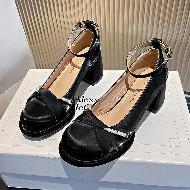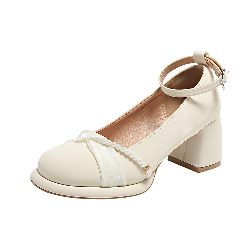 Главная страница > Женские туфли Мэри Джейн на толстом каблуке в стиле ретро, повседневные, французский дизайн, весна-осень 2025, неглубокий вырез, универсальные, белые, высокие каблуки