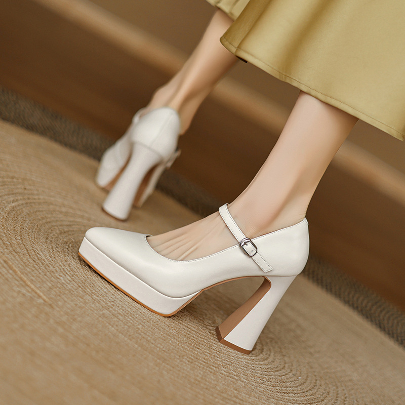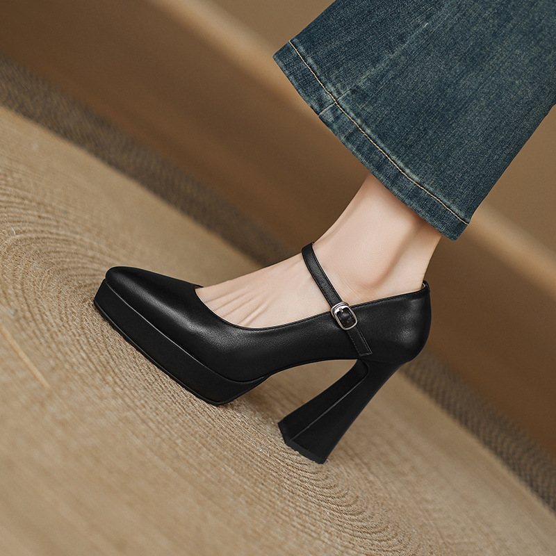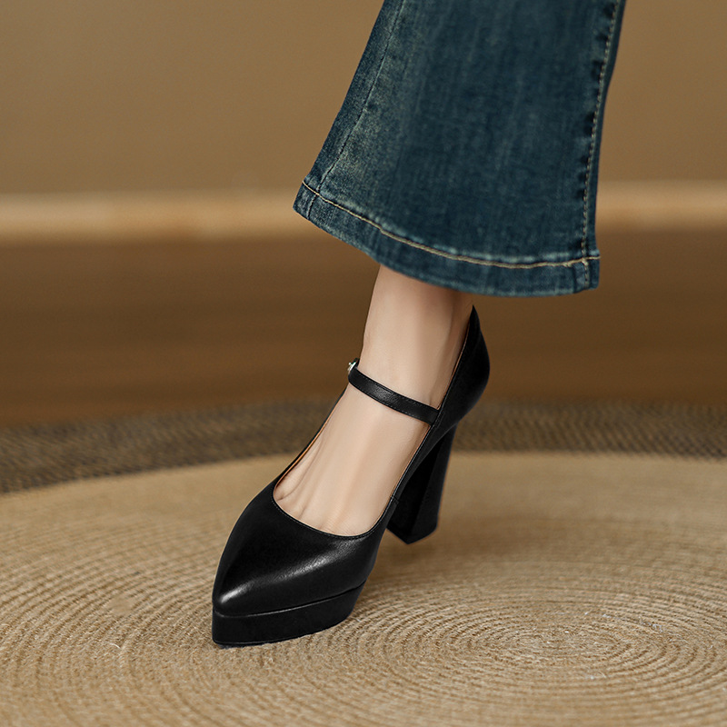Главная страница > 2025 весенне-осенние женские туфли с острым носком и неглубоким носком, водонепроницаемые туфли на платформе на толстой подошве, туфли на высоком каблуке, маленькие одинарные туфли, обувь для рабочей одежды