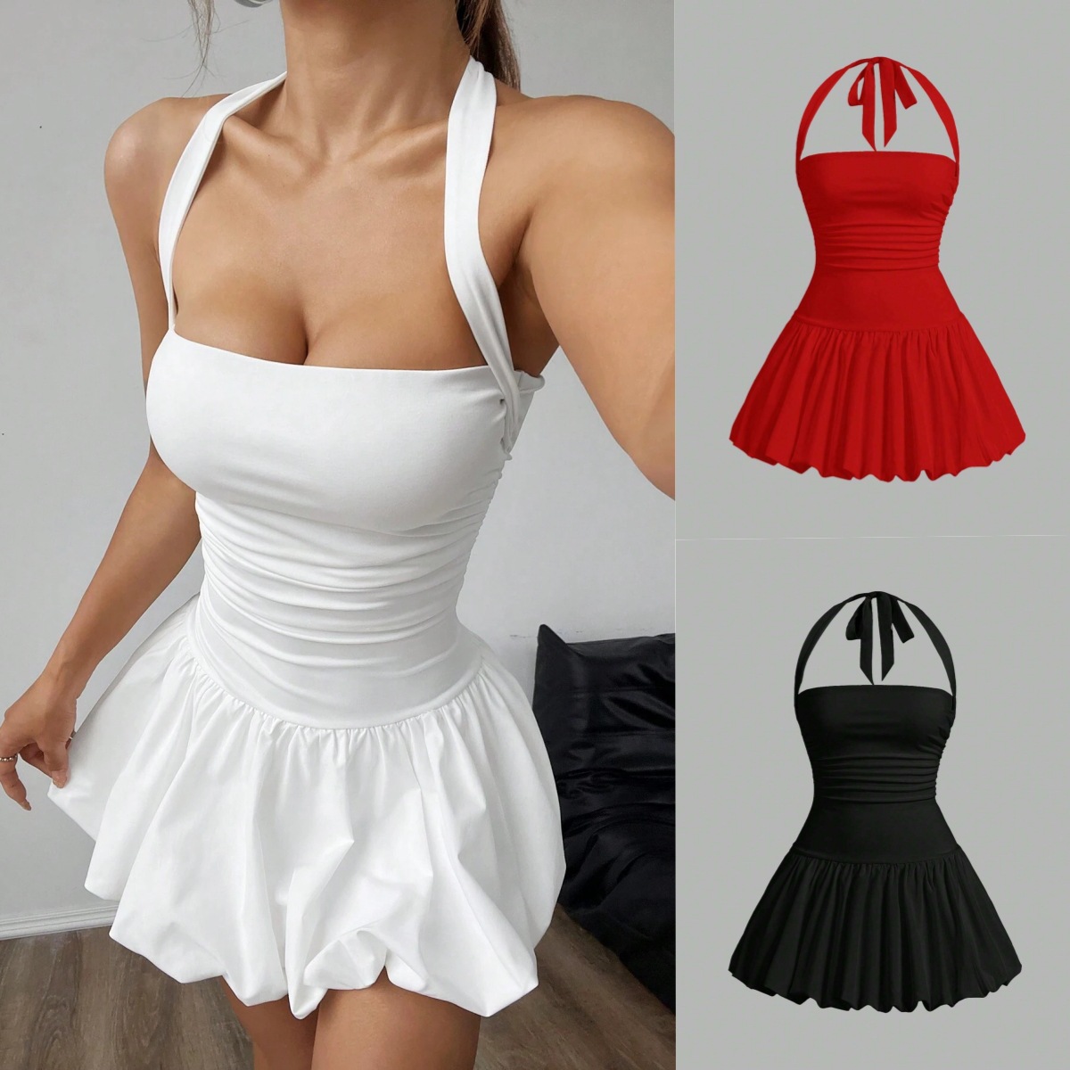 Главная страница > Летнее платье 2025 года, европейско-американский стиль, женское, сексуальное, уличная мода, однотонное, без рукавов, на бретелях, с открытой спиной