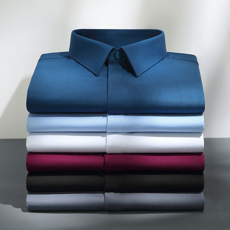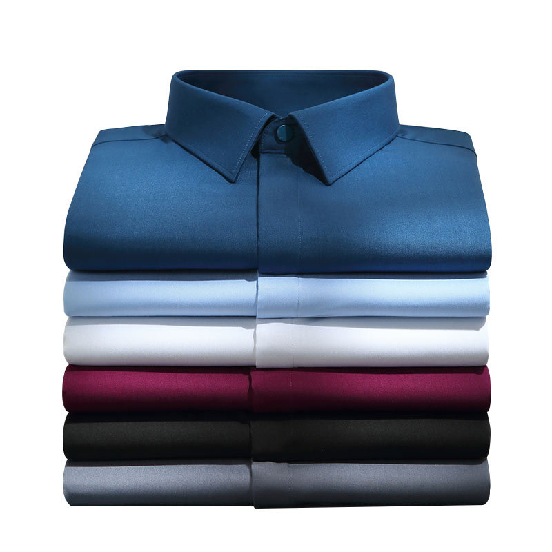 Главная страница > [Темная планка] Мужская деловая рубашка из бамбукового волокна, однотонный деловой повседневный комбинезон больших размеров, рубашка с длинным рукавом, Мужская