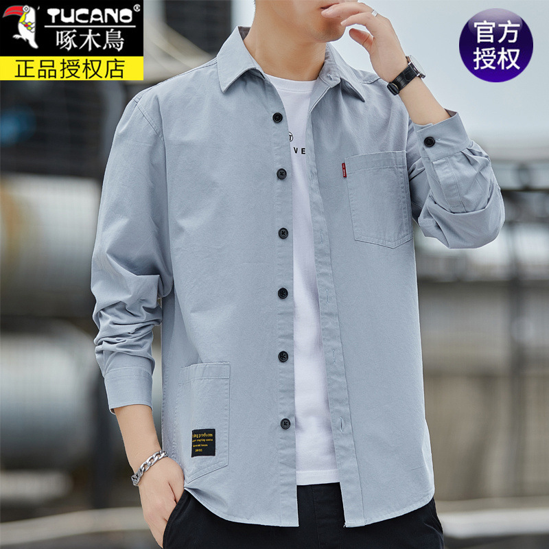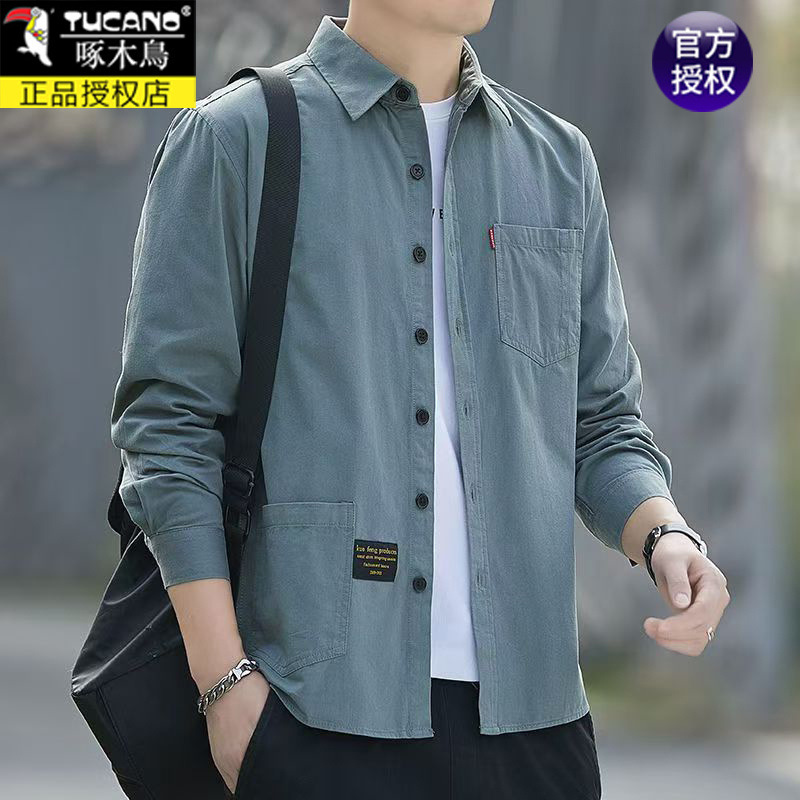 Главная страница > Дятел 100% хлопчатобумажная рубашка мужская с длинными рукавами повседневная рабочая одежда куртка мужская весенняя и осенняя рубашка мужская тенденция