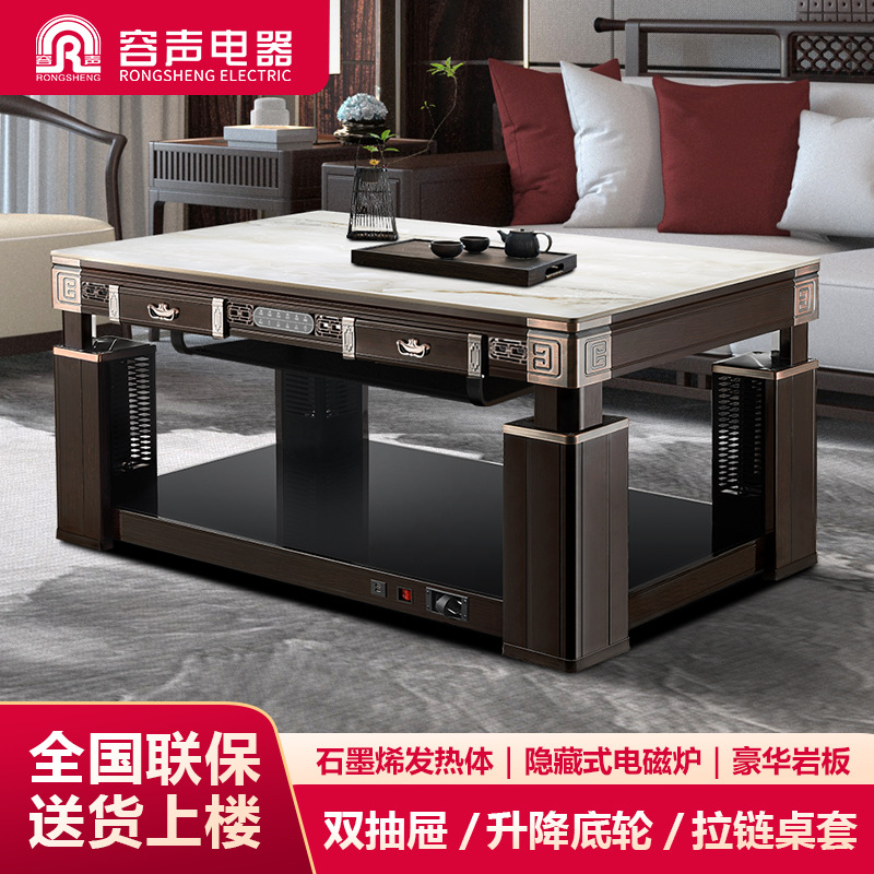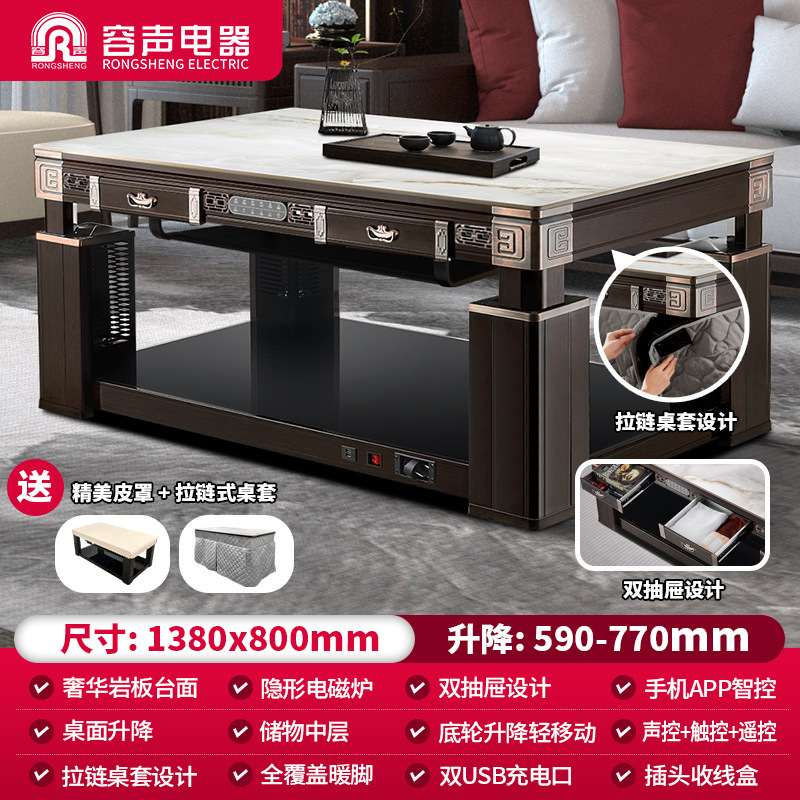 Кофейный столик с подогревом RongSheng Asdi, многофункциональный квадратный электрический столик с регулируемой температурой и функцией подогрева ног.