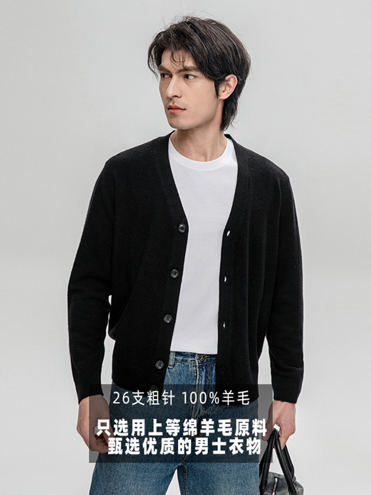 Главная страница > Машинная стирка весенне-осенний базовый вязаный кардиган с V-образным вырезом, свитер из чистой шерсти, мужской свитер с длинными рукавами, молодежное однотонное пальто