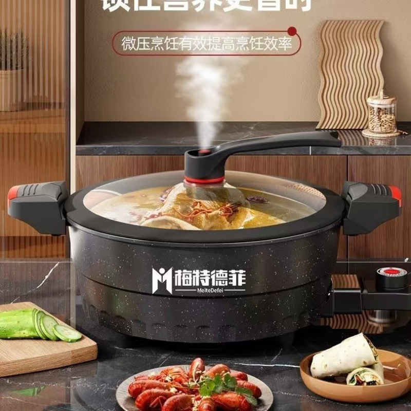 Главная страница > Многофункциональная электрическая вок-кастрюля Metdephi с антипригарным покрытием для приготовления на пару и тушения, универсальная кухонная плита с подключением к сети
