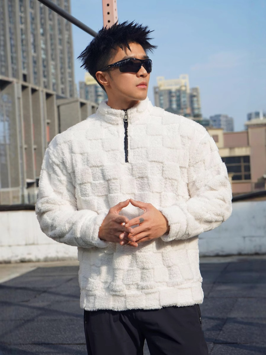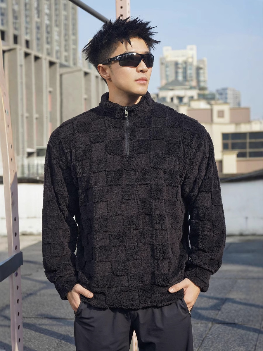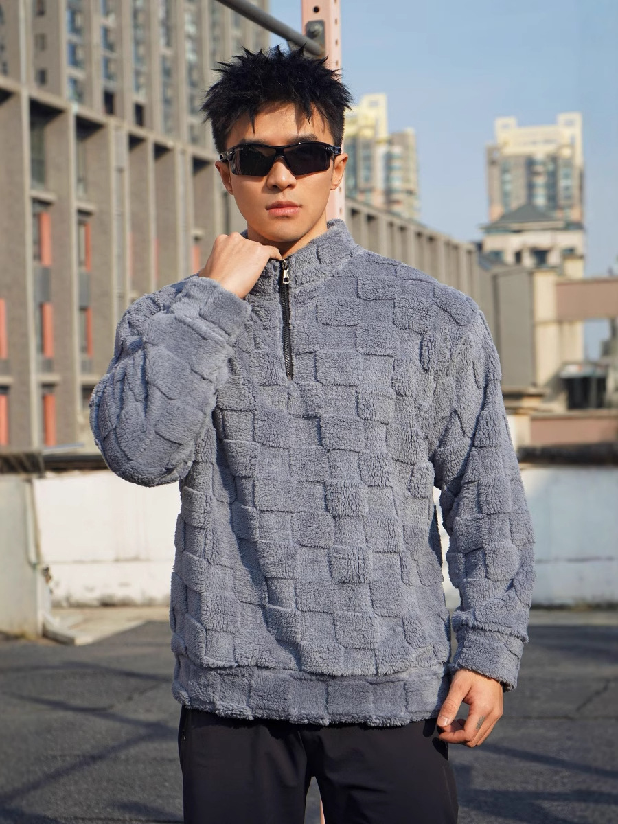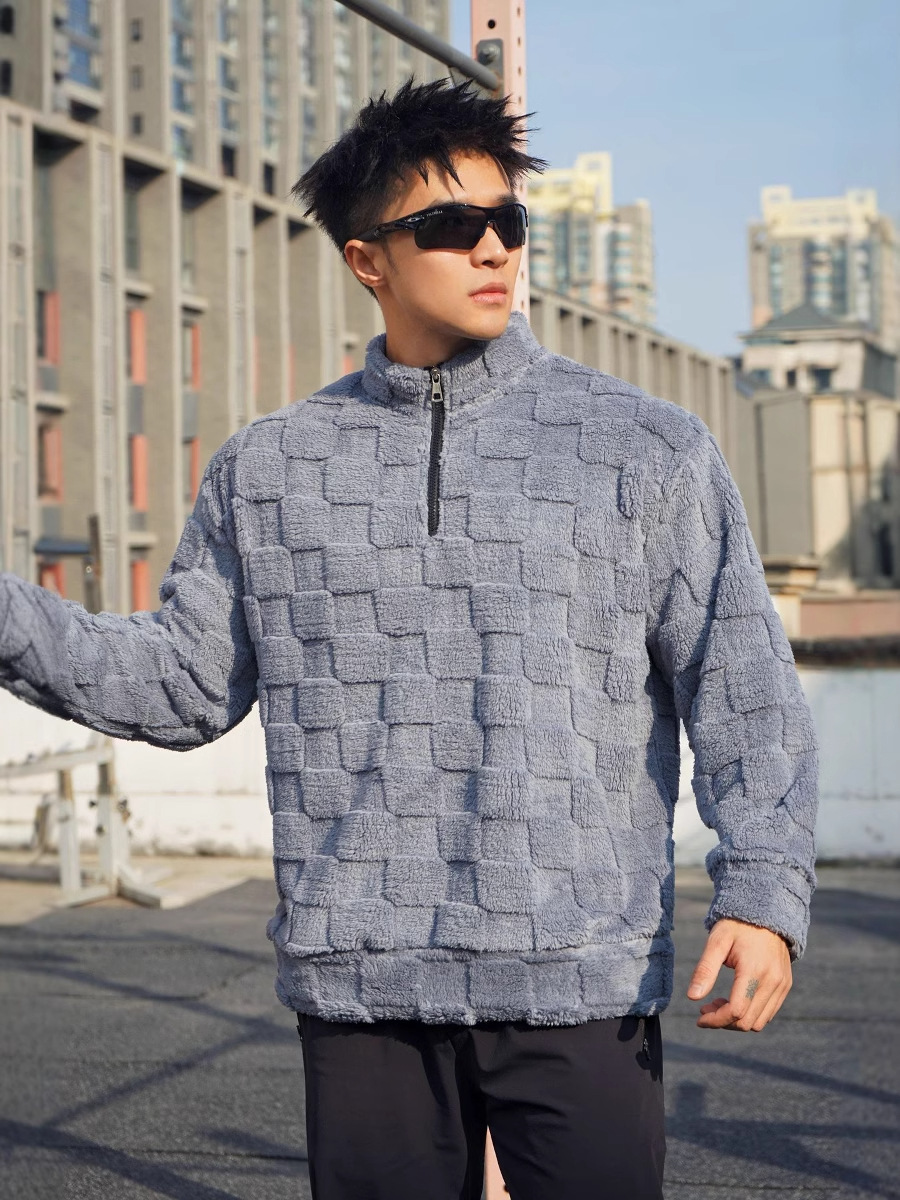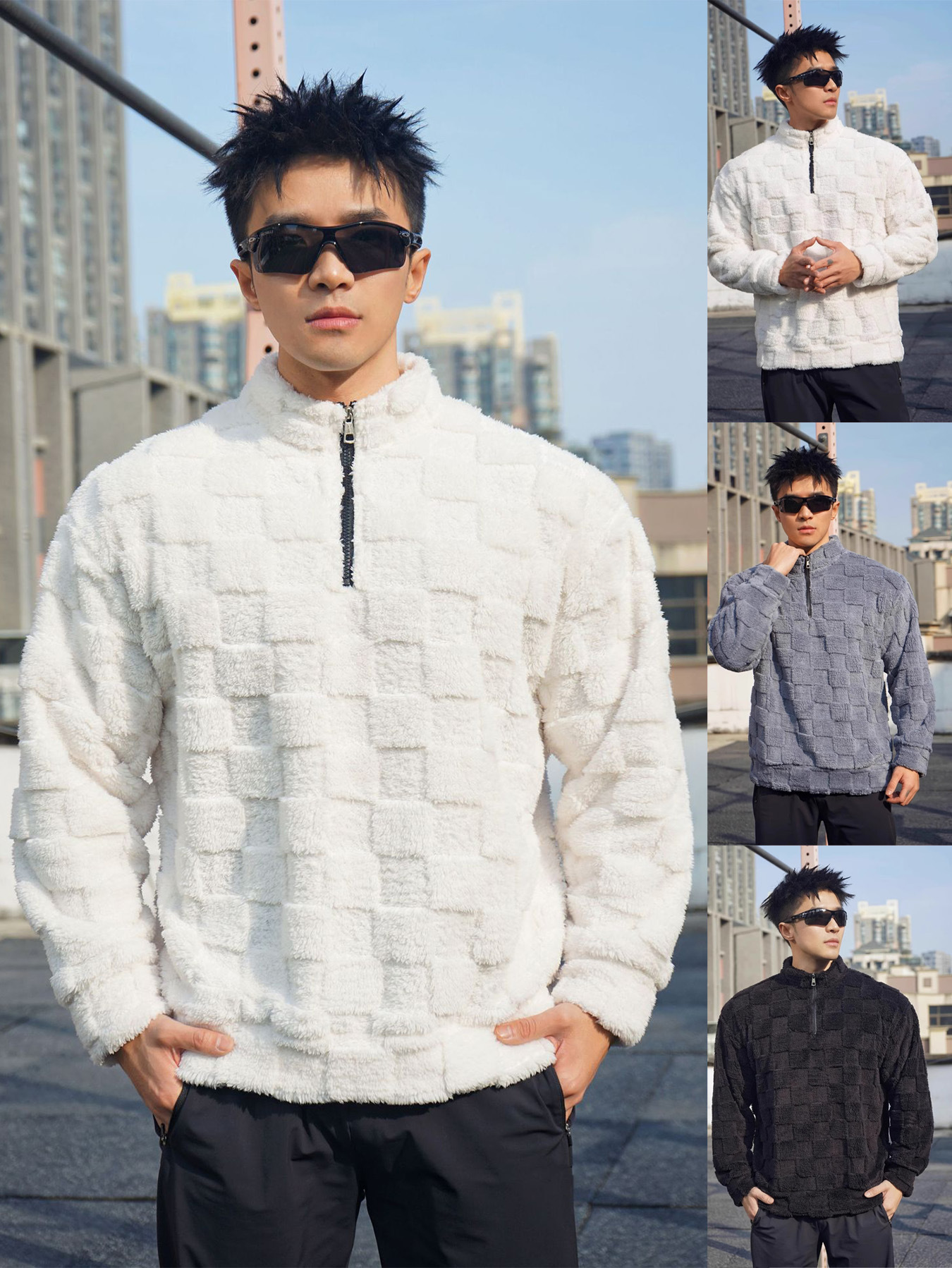 Главная страница > Новая зимняя стойка воротник для мужчин повседневная спортивная шерстяная куртка рыхлый большой размер полузастежка на молнии свитер свободные мышцы