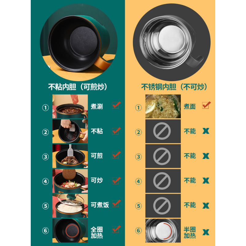 Многофункциональная электрическая кастрюля для общежития, студенческая кастрюля, бытовая кастрюля для приготовления лапши и жарки, универсальная кастрюля, маленькая мини-электрическая кастрюля, электрическая кастрюля