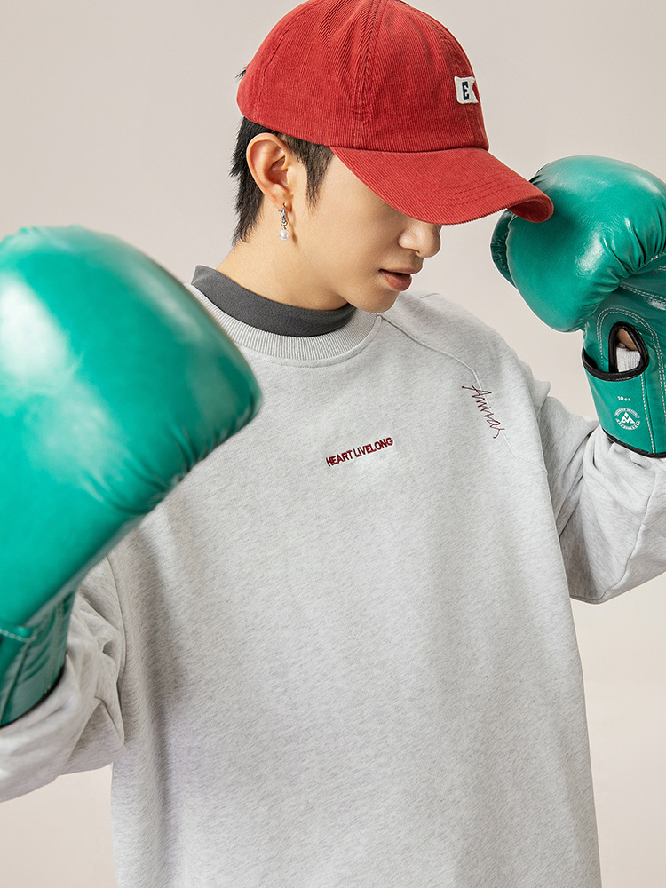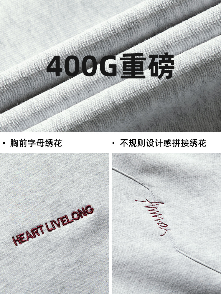 Главная страница > Мужской свитшот с круглым вырезом 400G, весенняя новинка, асимметричная вставка, вышивка букв, тяжелый пуловер с капюшоном, парная куртка