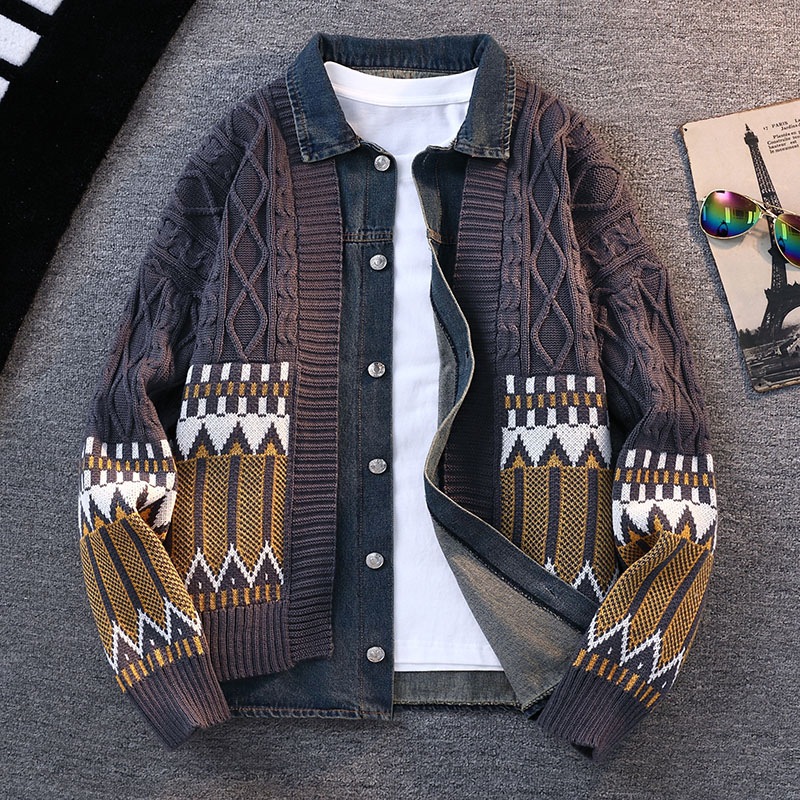 Главная страница > Новый осенне-зимний новый искусственный вязаный кардиган из двух частей, мужской повседневный модный модный свитер с длинными рукавами, мужская одежда