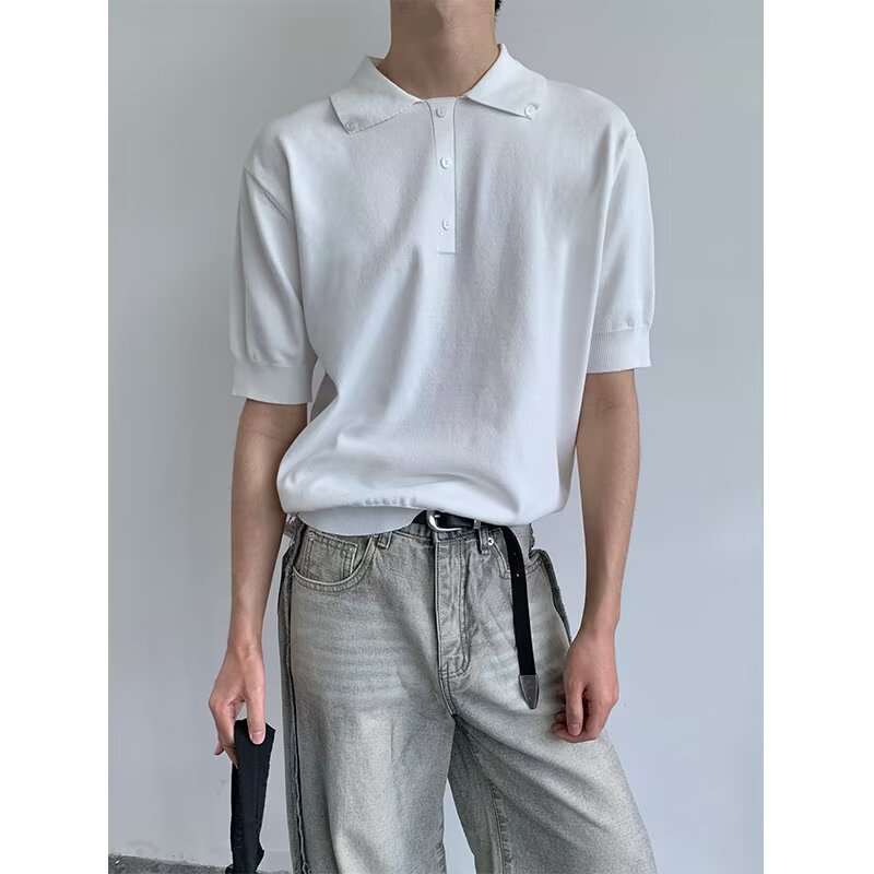Главная страница > Летняя модная повседневная мужская рубашка с короткими рукавами в японском стиле, стильная и простая трикотажная рубашка с отложным воротником и половиной рукавов
