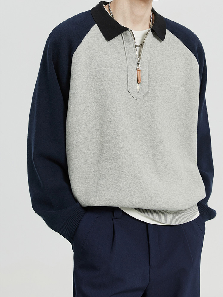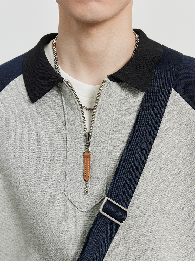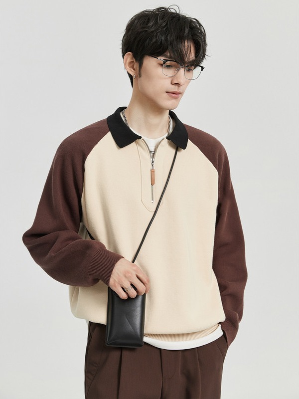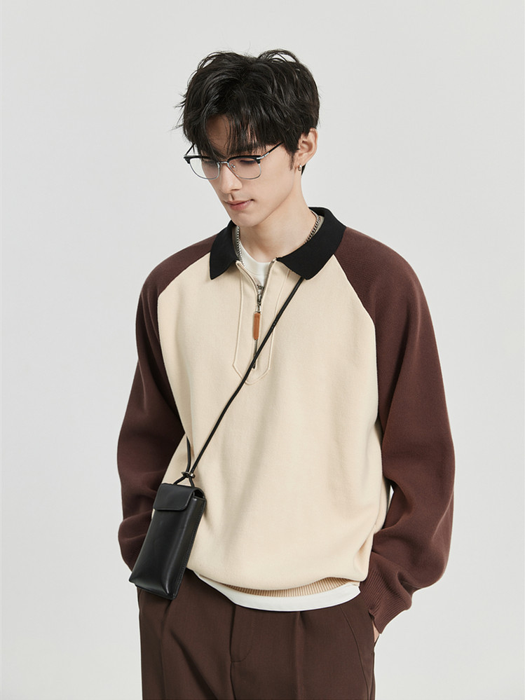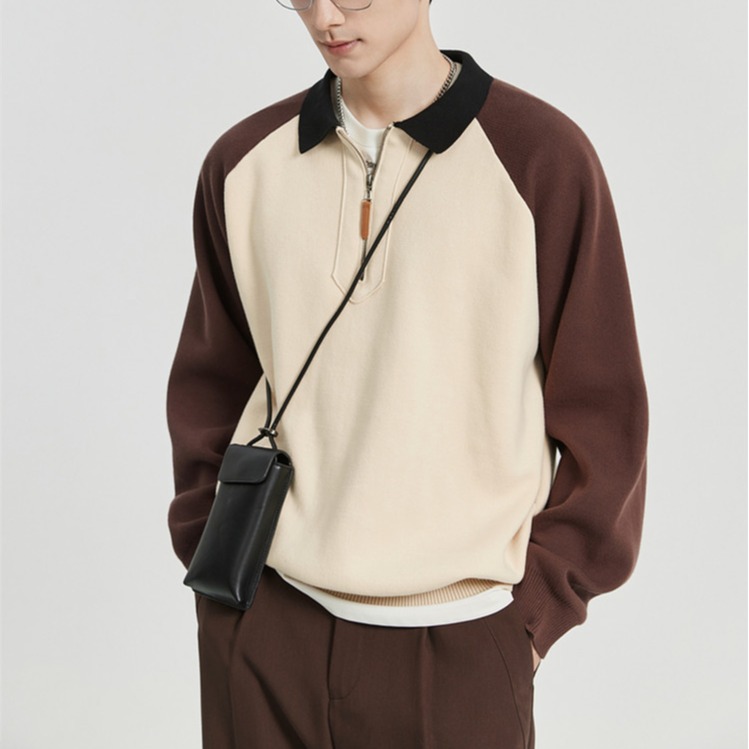 Главная страница > Мужской вязаный свитер с воротником-поло в японском стиле с цветными блоками и половиной молнии, осень и зима 2023, новая корейская версия, модная куртка-свитер