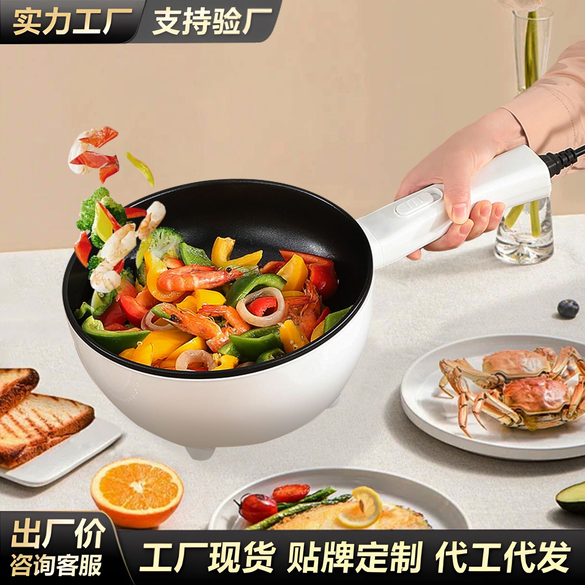 Электрический вок для дома, большой емкости, электрическая сковорода, универсальная кастрюля для приготовления на пару, портативная электрическая кастрюля для приготовления пищи, горячий горшок, вок, оптовая продажа с фабрики