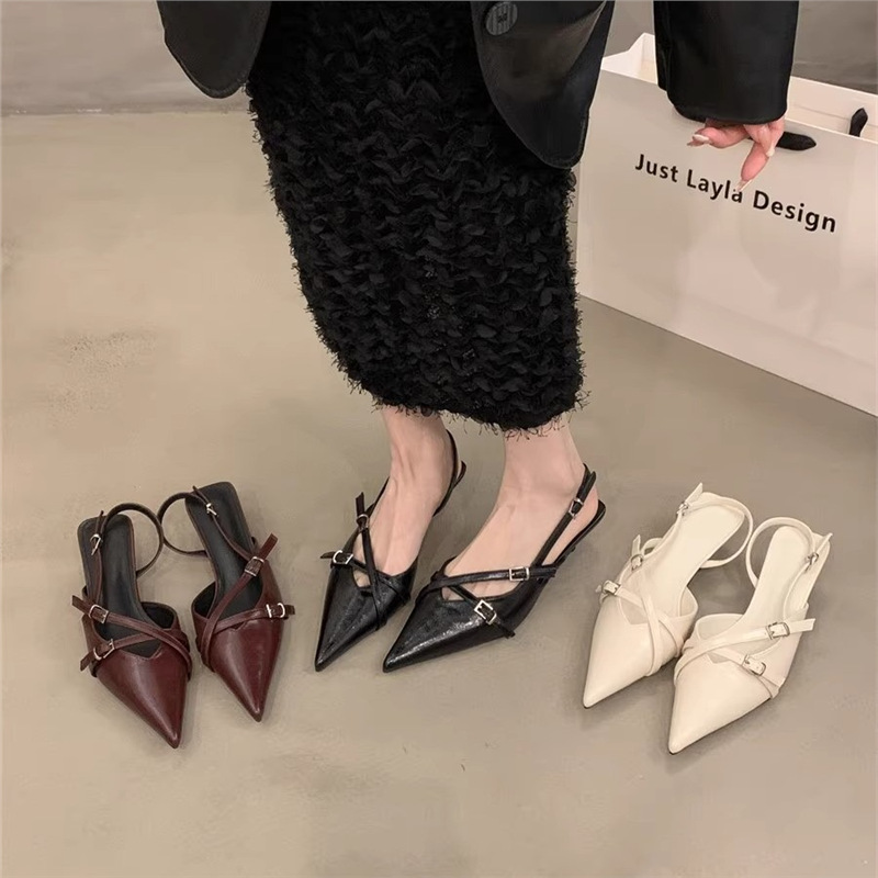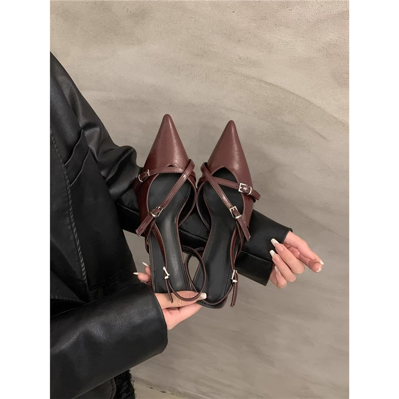 Главная страница > Женские туфли на высоком каблуке весна-лето 2025, новая модель, ретро, заостренный носок, шпилька, пряжка, босоножки с юбкой