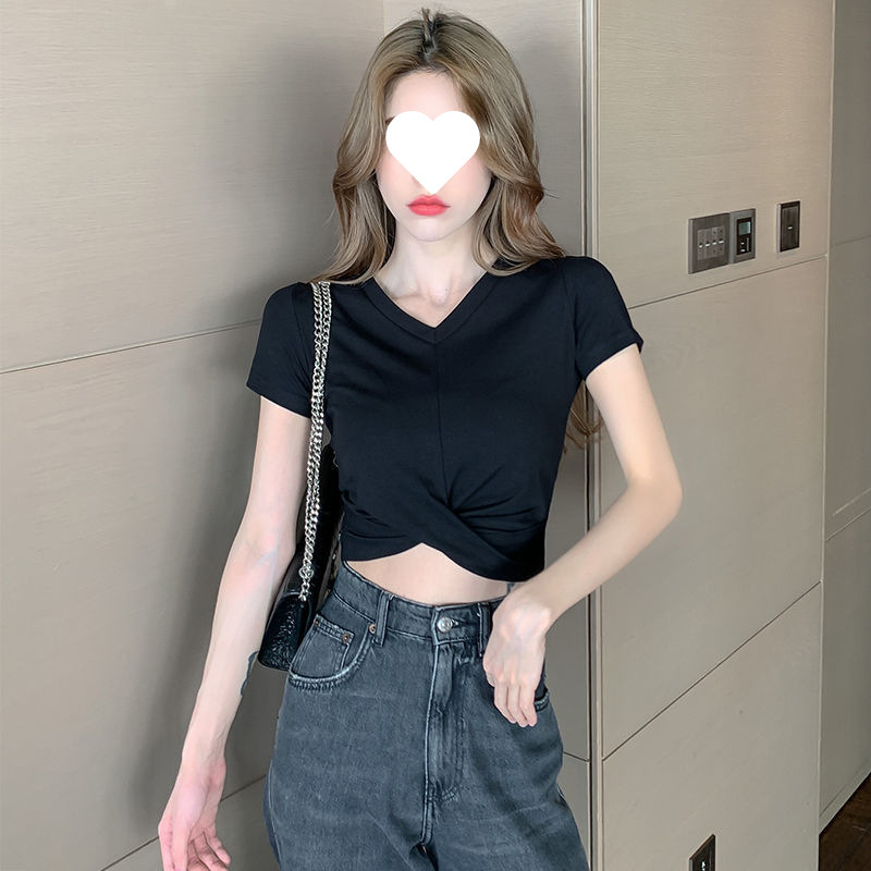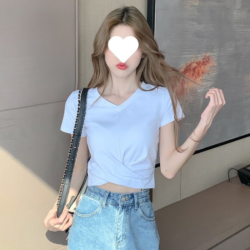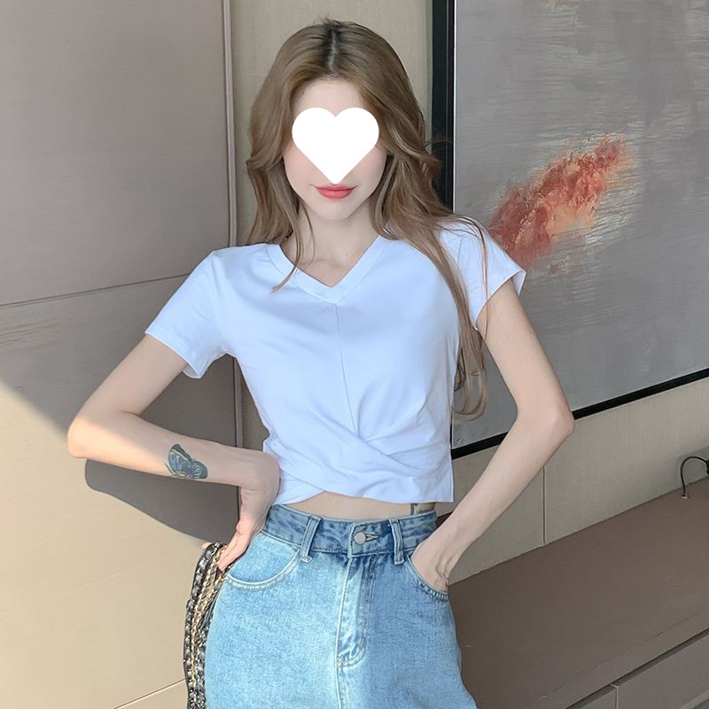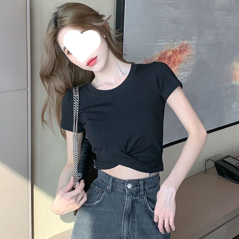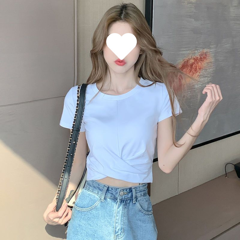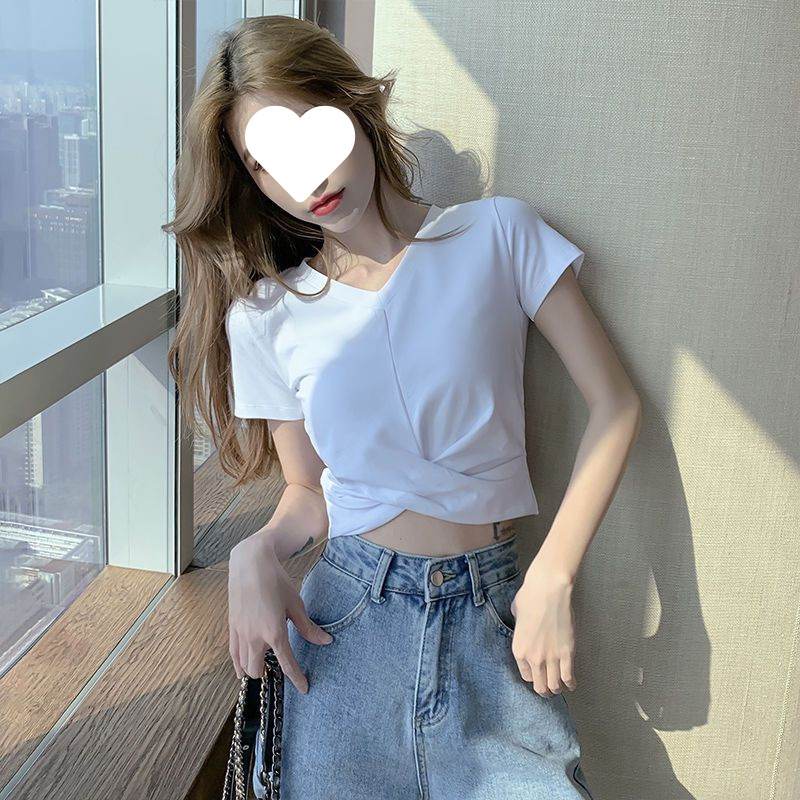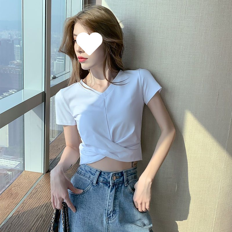 Главная страница > Белый короткий укороченный топ для женщин, с коротким рукавом, модный в Instagram, миниатюрный, приталенный, с половиной рукава, облегающий, укороченный, с высокой талией, стильная футболка на лето.