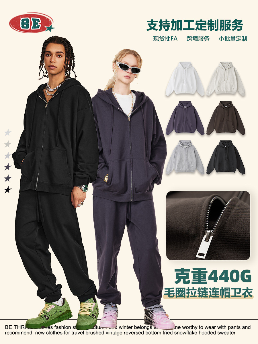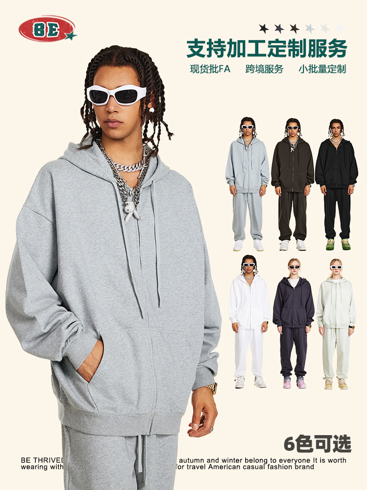 Главная страница > БЭ мужская одежда | Модная брендовая толстовка-худи с молнией, однотонная, из махровой ткани, свободного кроя, осень 2025 года, для молодёжи