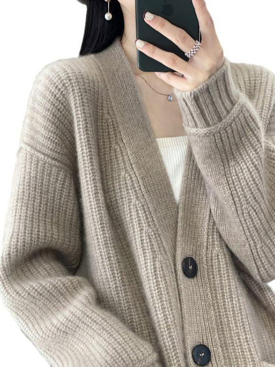 Главная страница > Кардиган, свитер с V-образным вырезом, Женский Осень 2023, свитер, свободный однотонный вязаный Базовый Топ