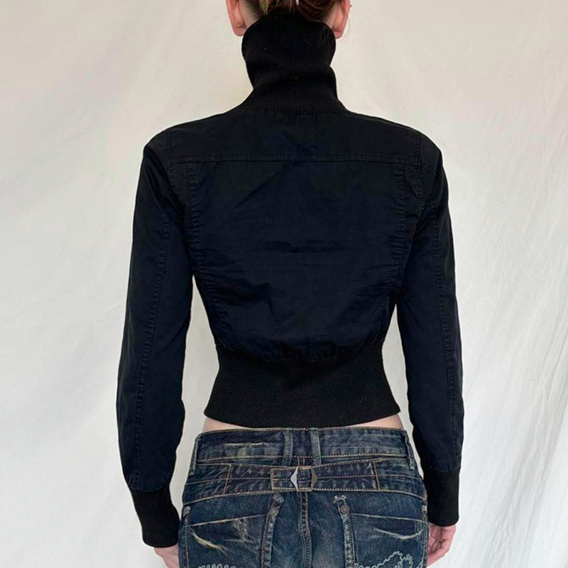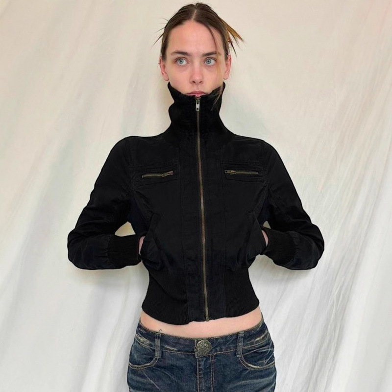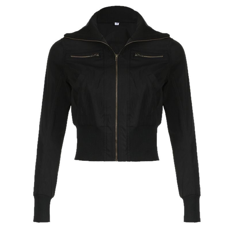 Главная страница > Женская куртка в стиле американского ретро, тканая куртка с застежкой-молнией на талии и воротником-стойкой, простая повседневная рабочая одежда, сексуальный топ