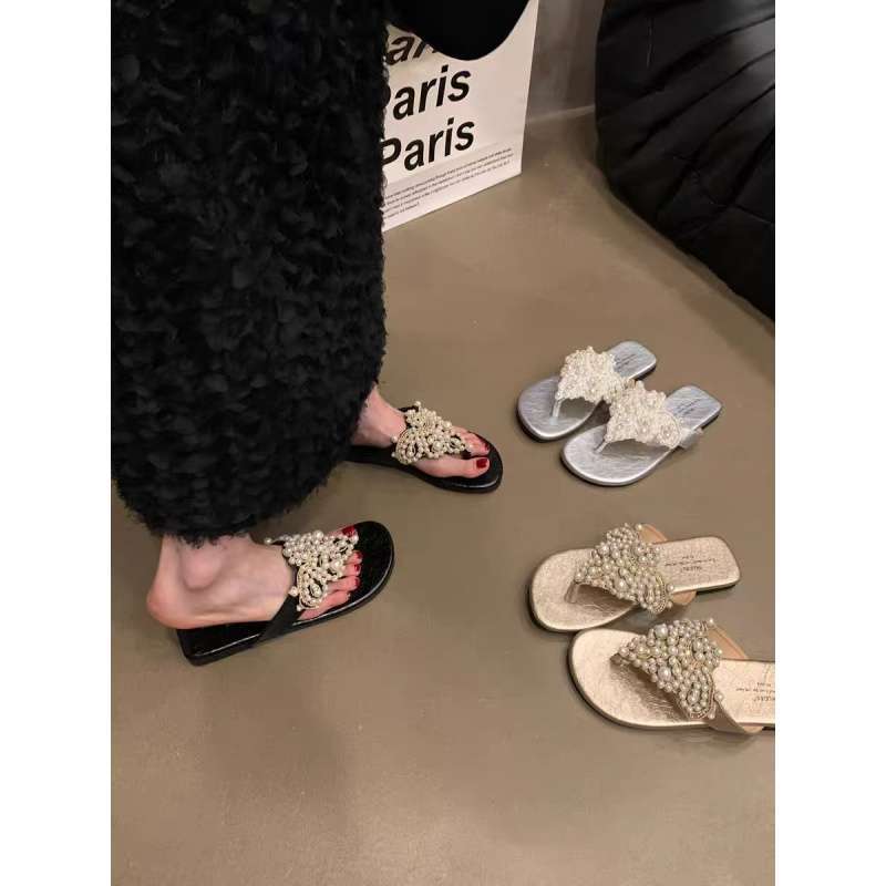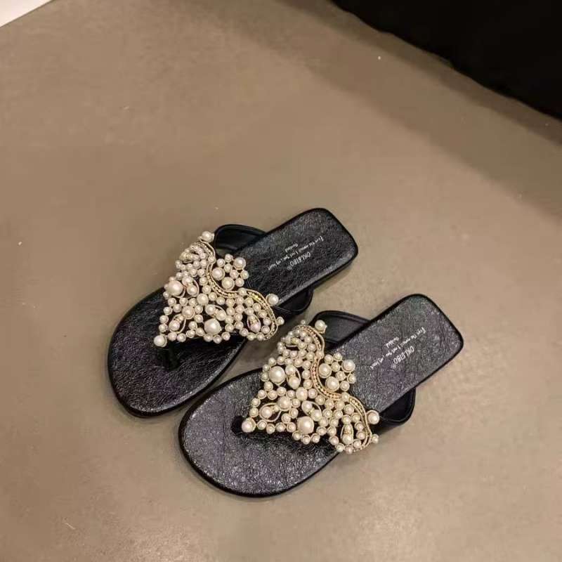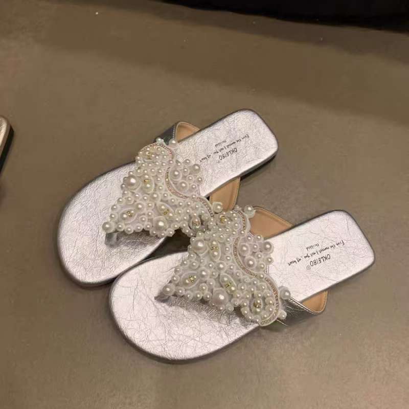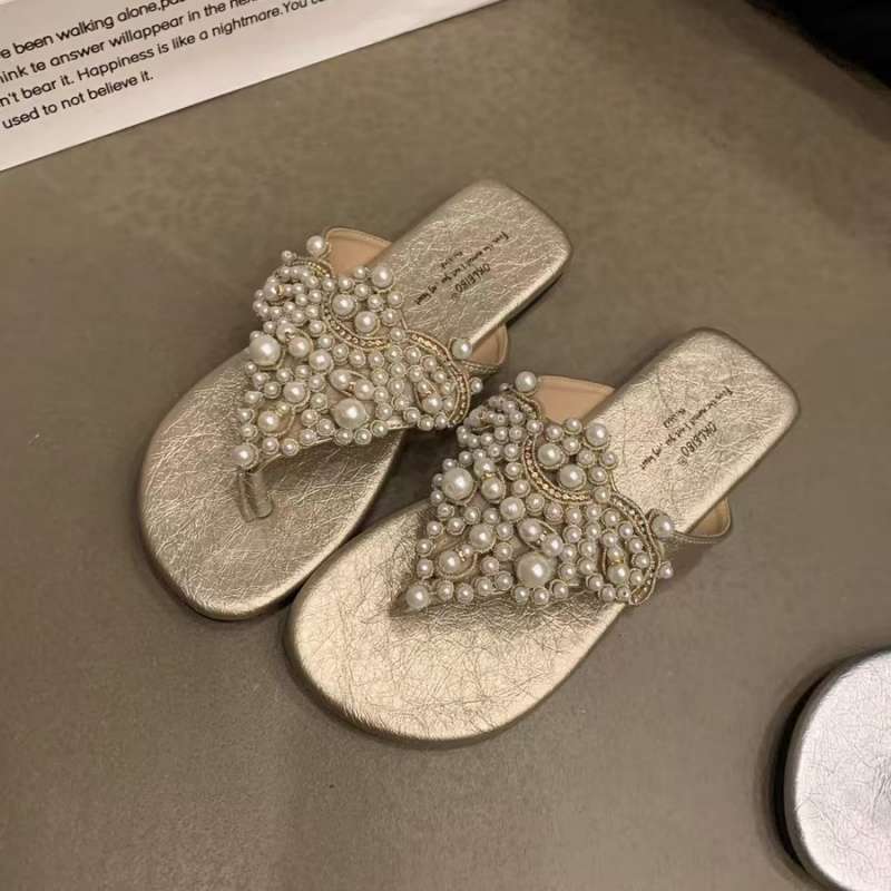 Главная страница > Женские шлепанцы в стиле "Жемчужная фея" 2025, новые летние французские ретро-богемные римские сандалии