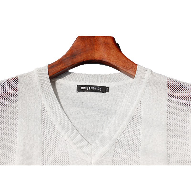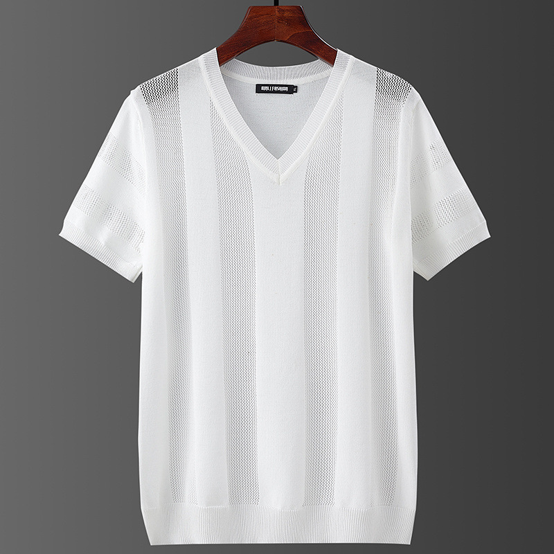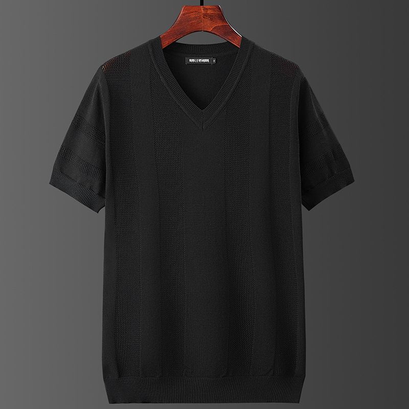 Главная страница > Мужская футболка из ледяного шелка с v-образным вырезом и воротником в форме сердца, летняя тонкая, крутая, дышащая трикотажная футболка большого размера, простая однотонная футболка с половиной рукавов