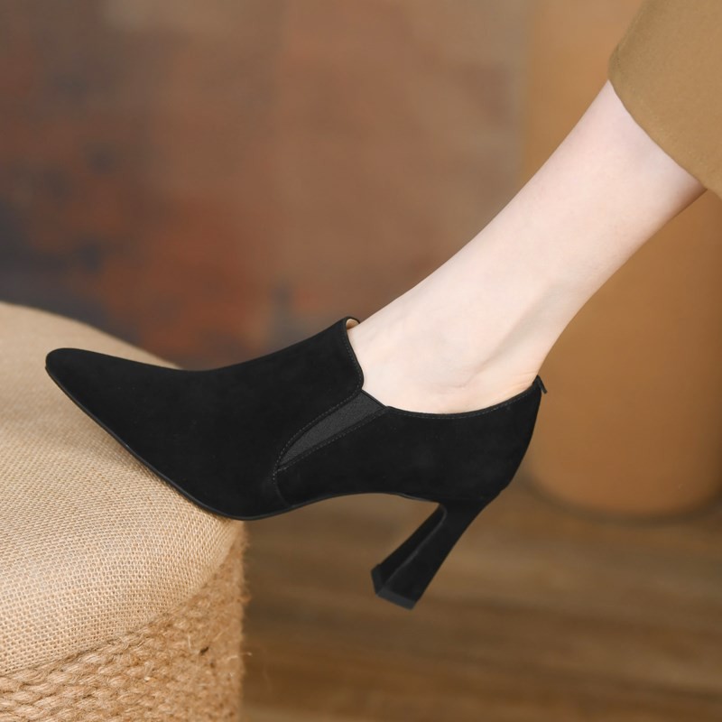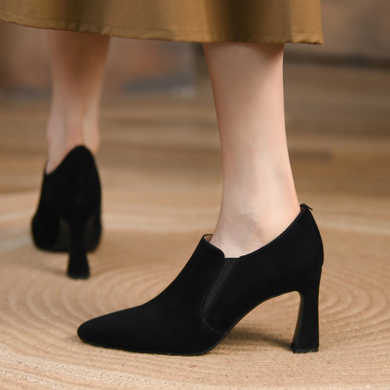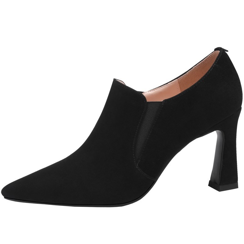 Главная страница > Черная Маленькая кожаная обувь 2023 Новая британская обувь без шнуровки с острым носком для пригородных поездок на тонком каблуке