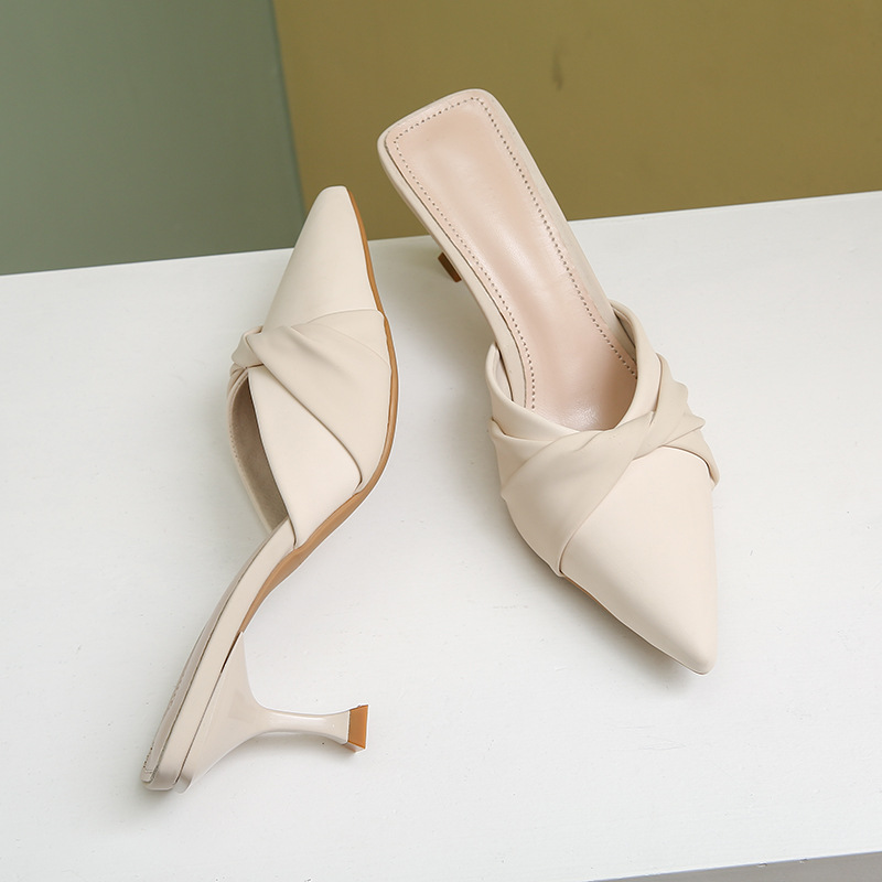 2024 Advanced Чувство заостренное мода дикий темперамент полукруга высокие каблуки новые женские тапочки внешняя торговля большой размер